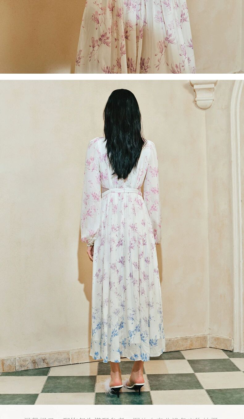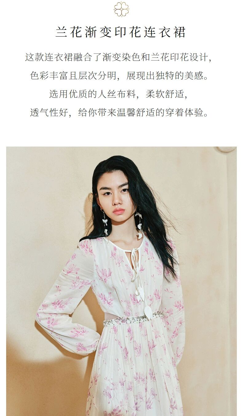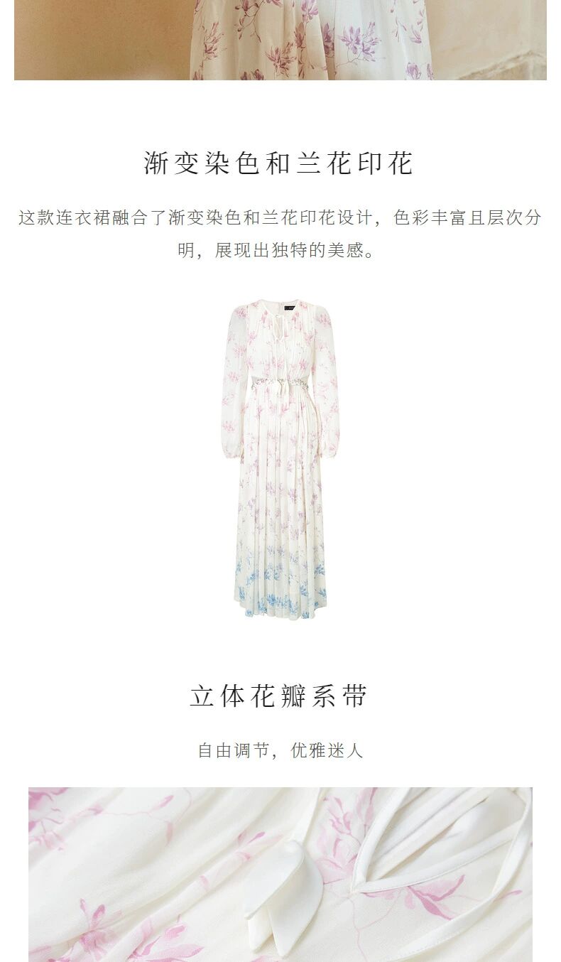 玛克门店发货:古优雅兰花渐变印花连衣裙2024(货号:MC85DR059)