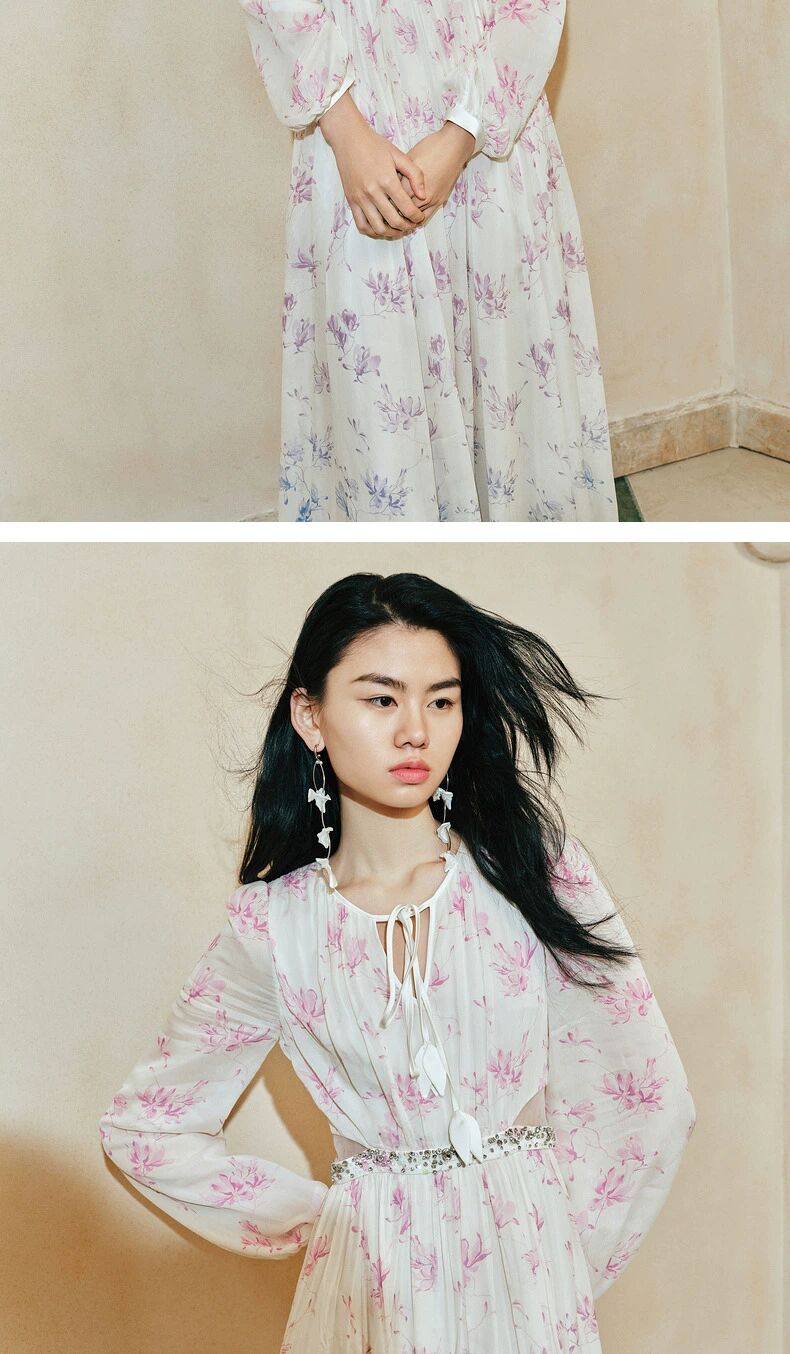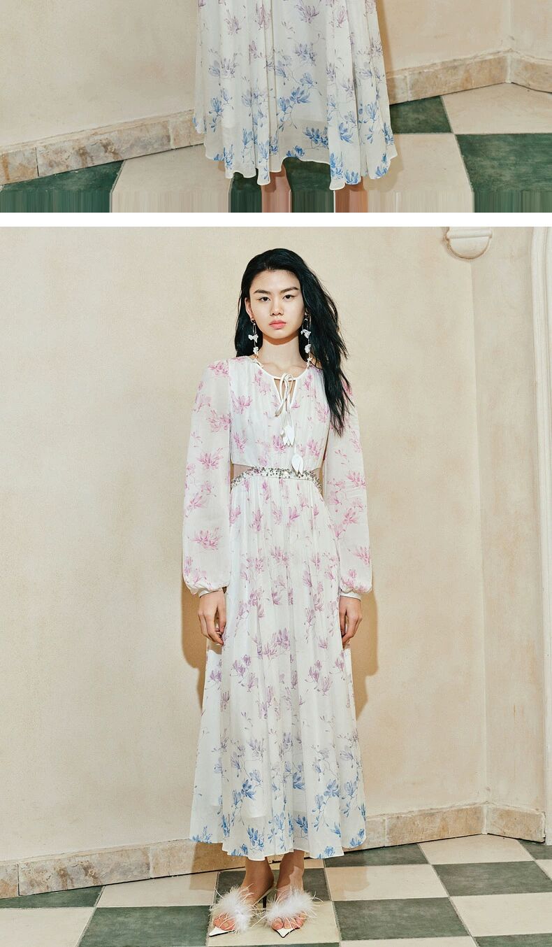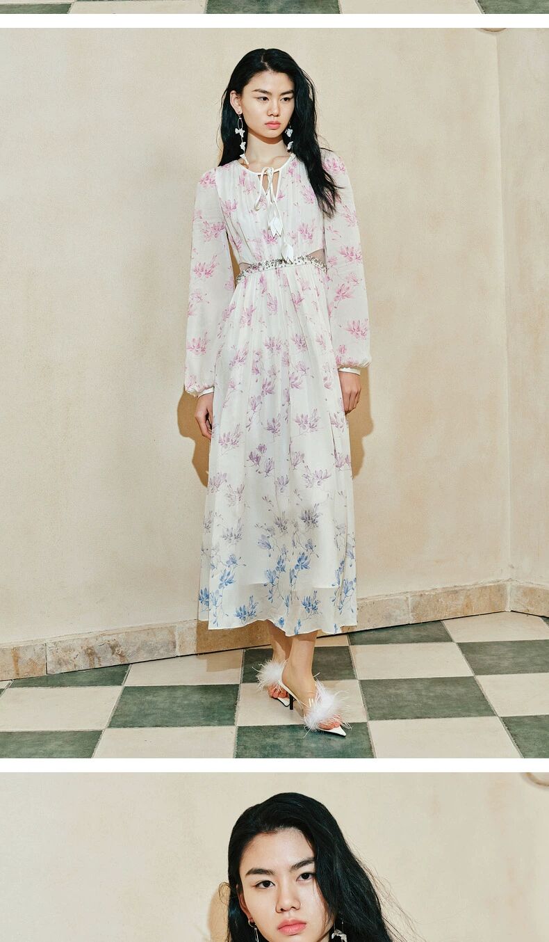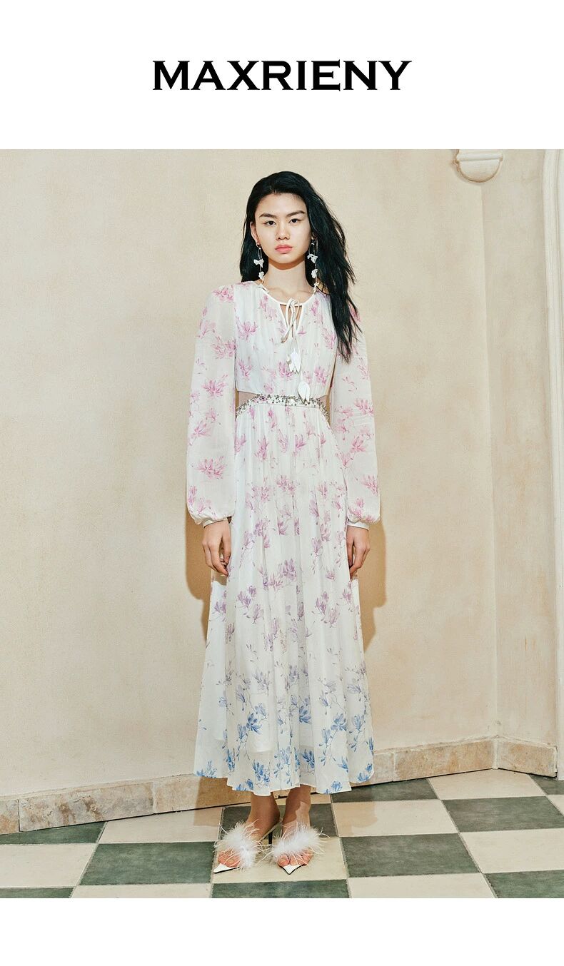 玛克门店发货:古优雅兰花渐变印花连衣裙2024(货号:MC85DR059)