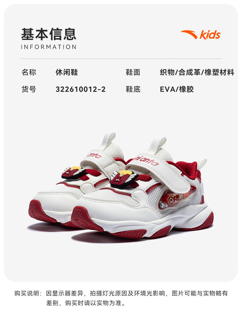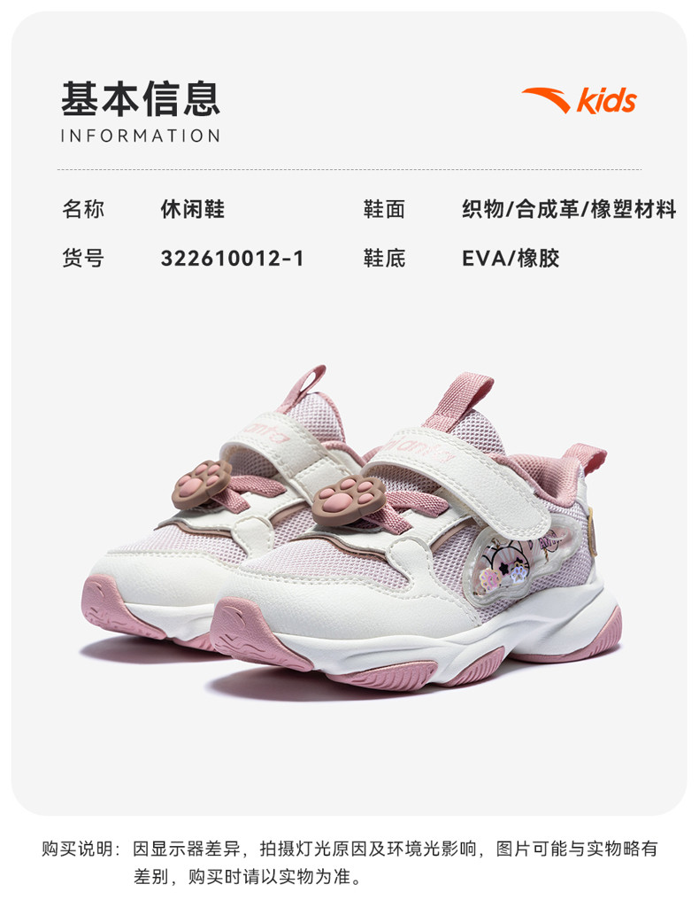 喵喵鞋新年款安踏儿童女婴童休闲鞋2026年上新款女宝宝二段稳步鞋322610012