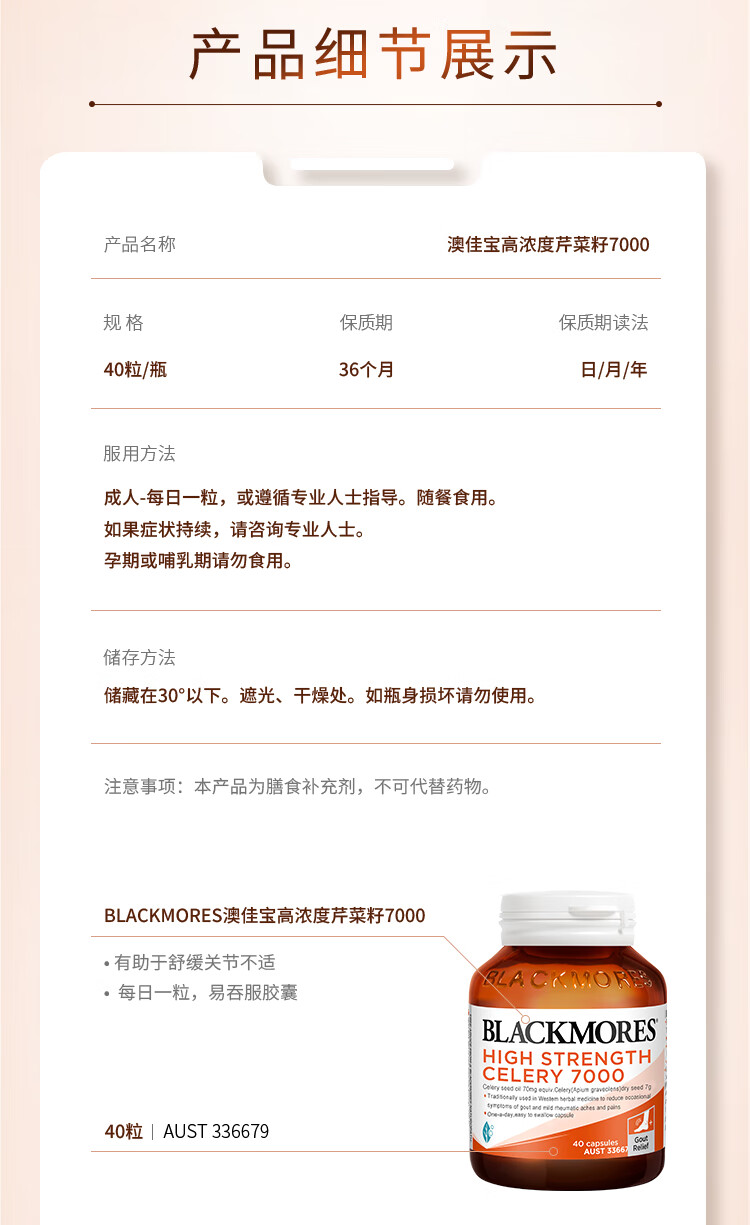 【保税仓】Blackmores澳佳宝高浓度芹菜籽精华胶囊40片