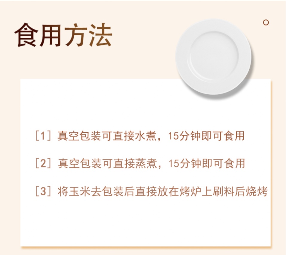 1.水煮或者蒸煮,将透明真空袋放入水中,水煮或蒸煮10-15分钟,包装袋胀起,取出食用,蒸煮水煮口感最佳