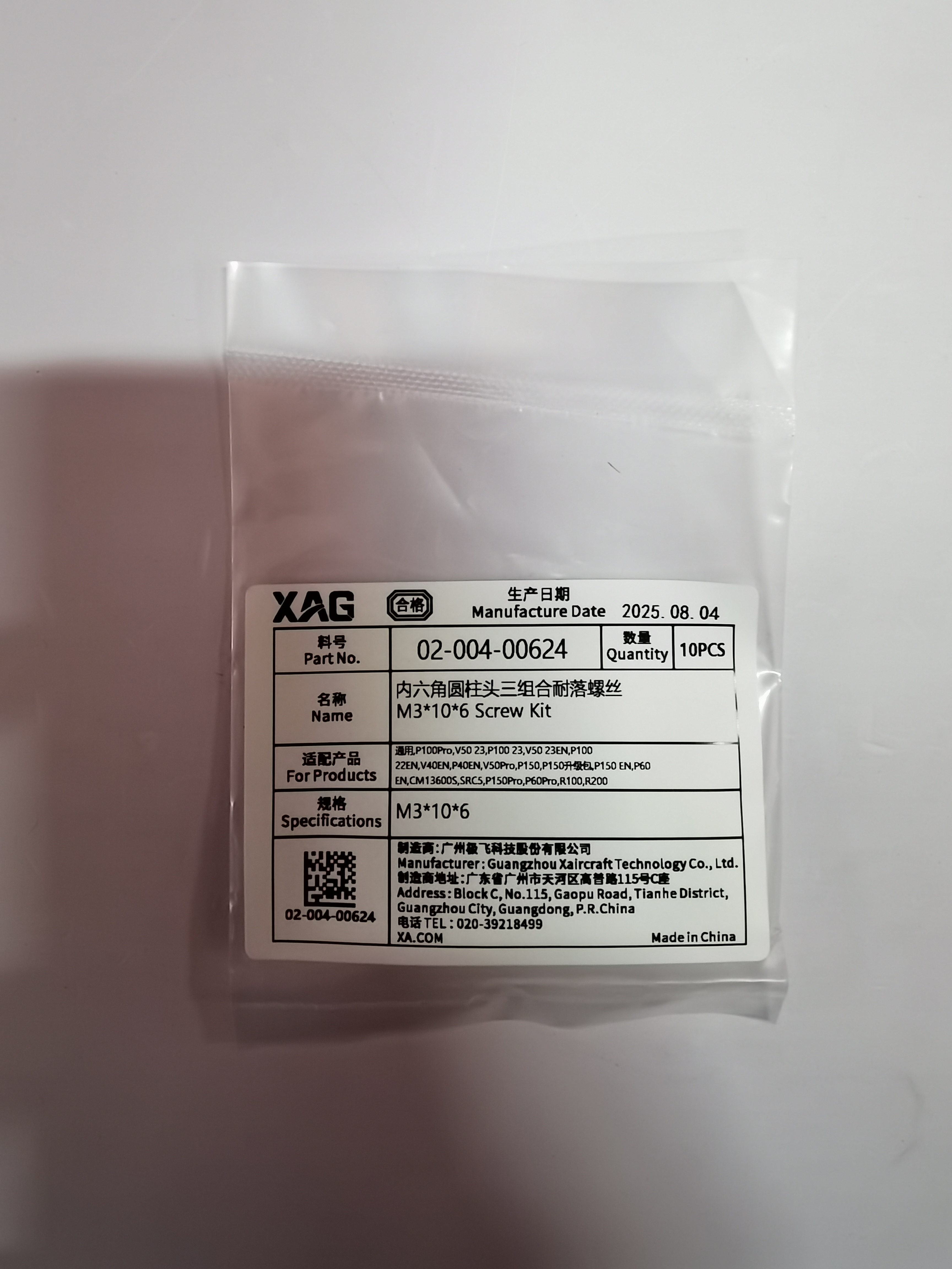 极飞 M3*10*6内六角圆柱头三组合耐落螺丝(10颗/包)