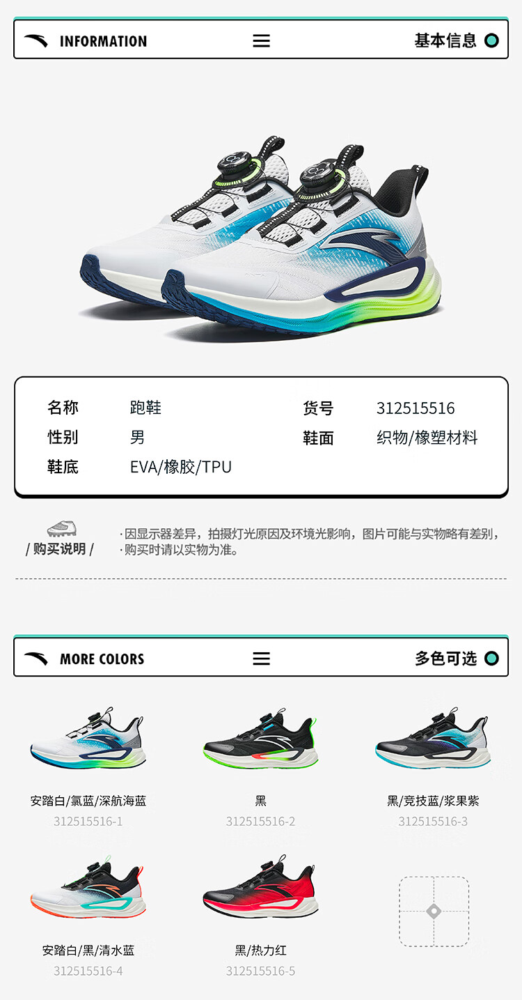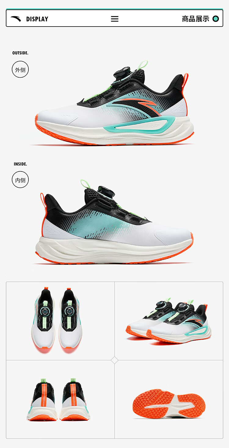 安踏儿童运动鞋男大童跑步系列旋钮低帮凌峰跑鞋312515516