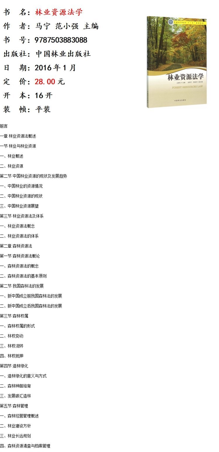 林业资源法学 8308 普通高等教育十三五规划教材 中国林业出版社 正版畅销书
