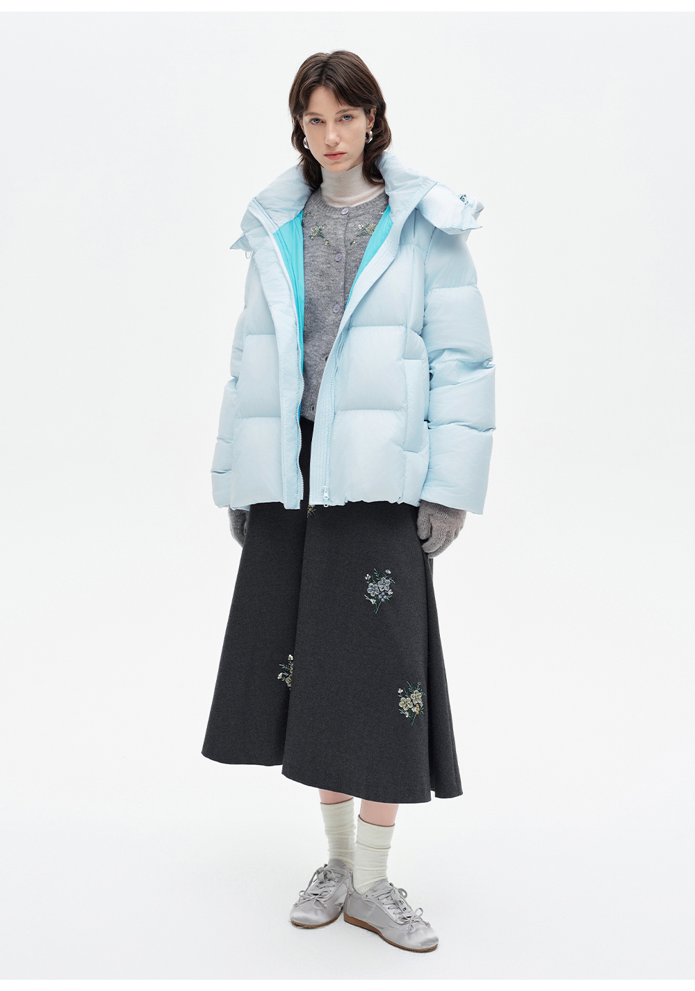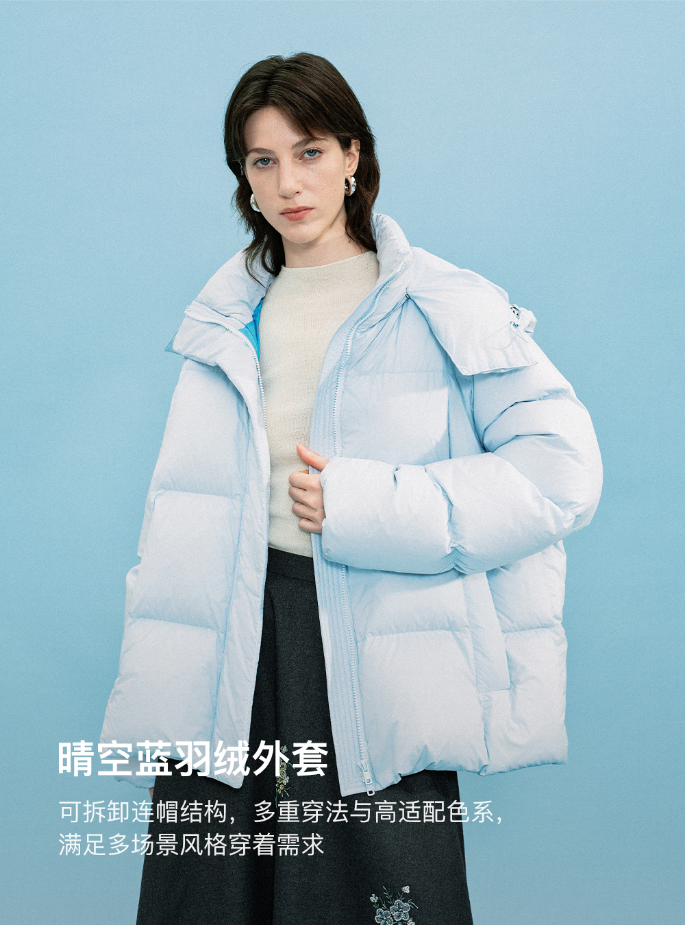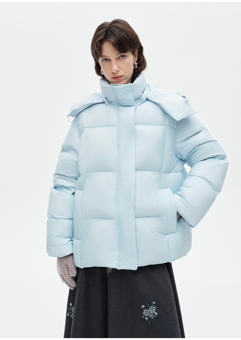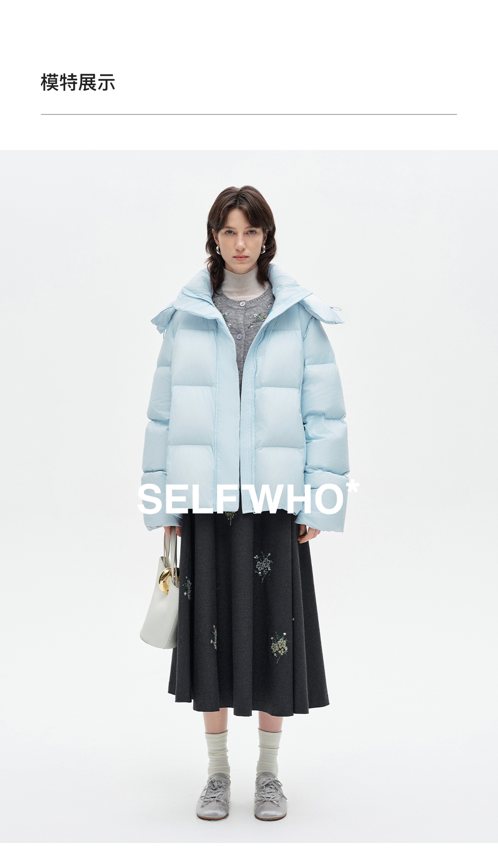 [马君妍同款]SELFWHO90白鸭绒羽绒服女装冬季新款可拆卸连帽外套
