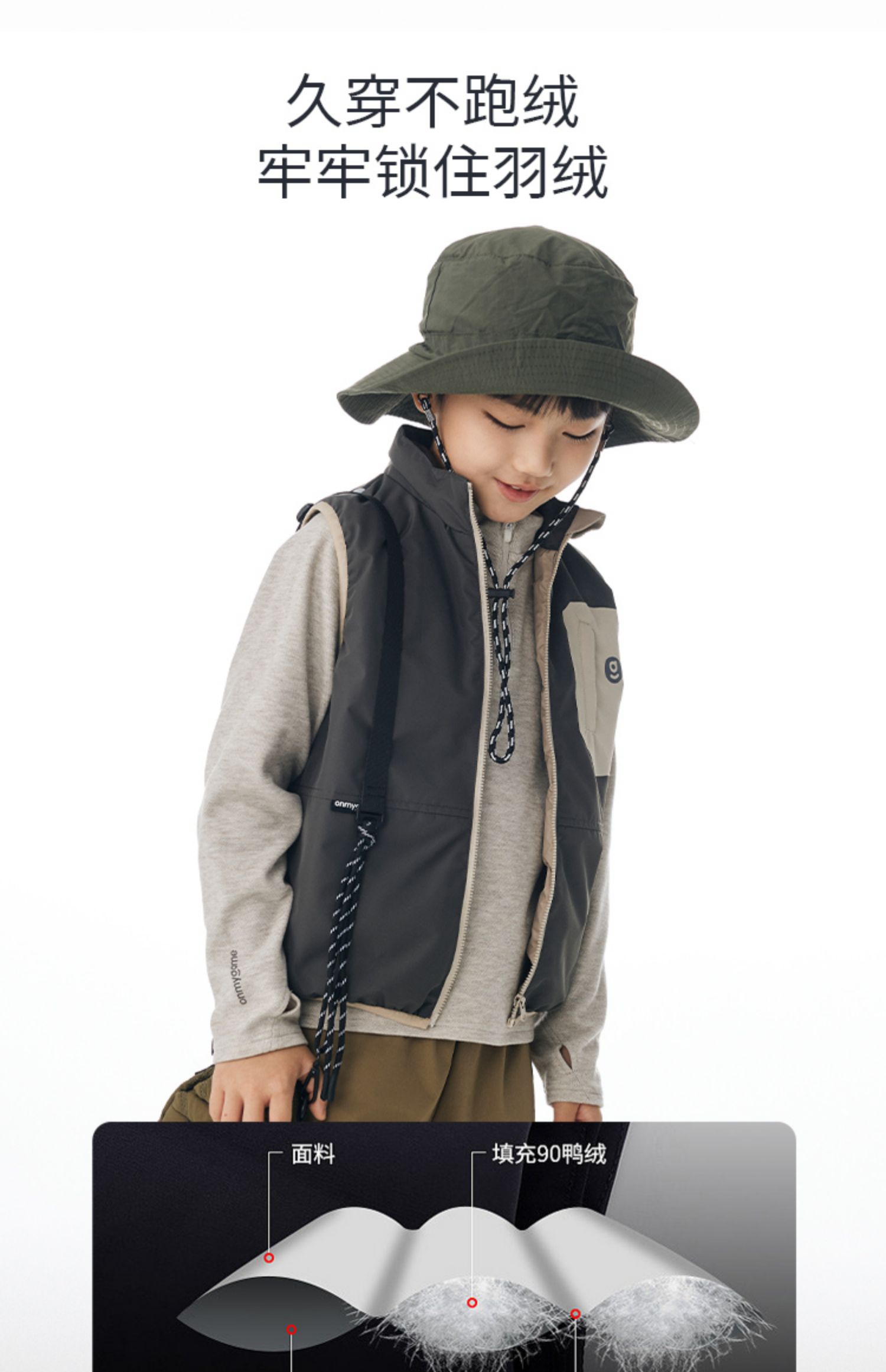 onmygame【黑武士】男童羽绒马甲秋冬装儿童三防保暖背心运动外套