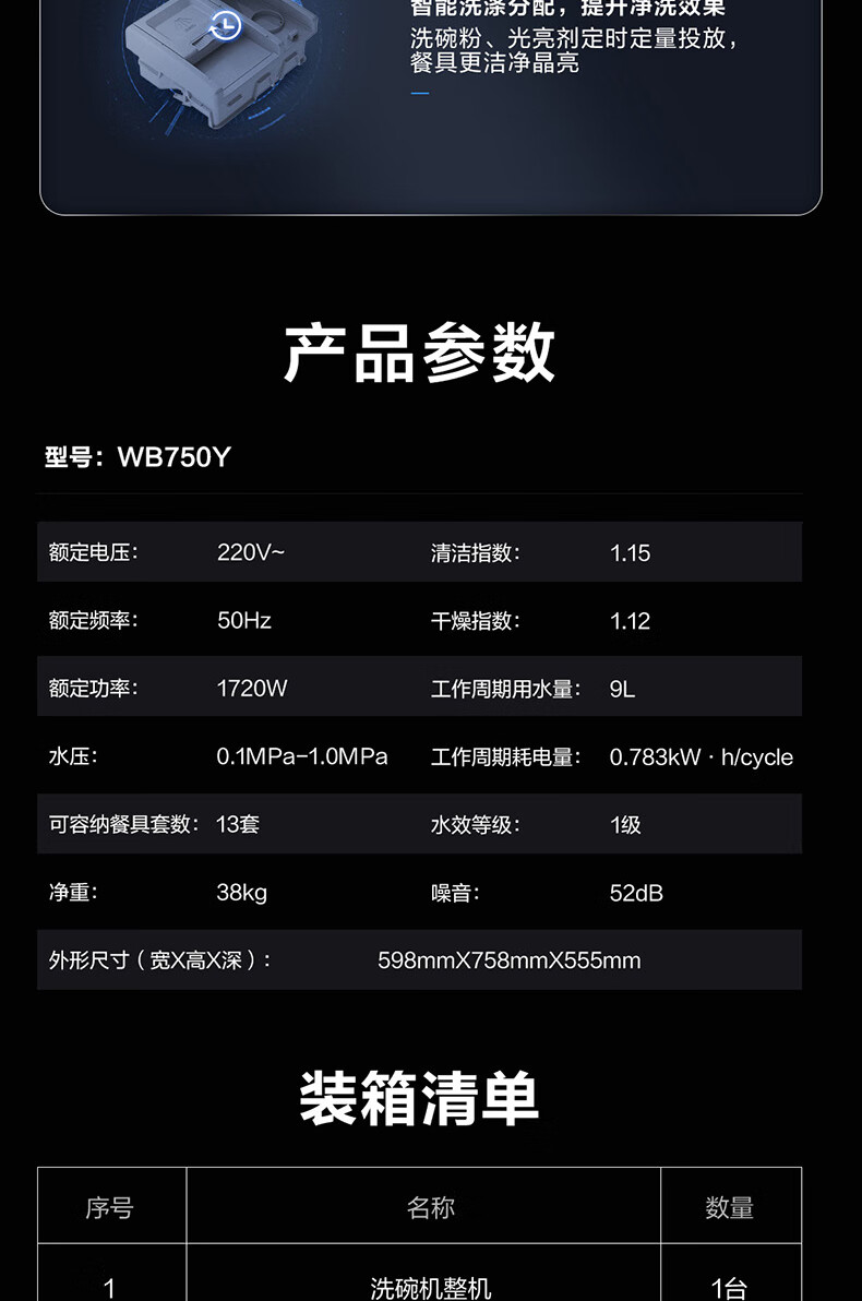 老板(Robam)WB750Y洗碗机 13套大容量洗碗机 家用洗碗机