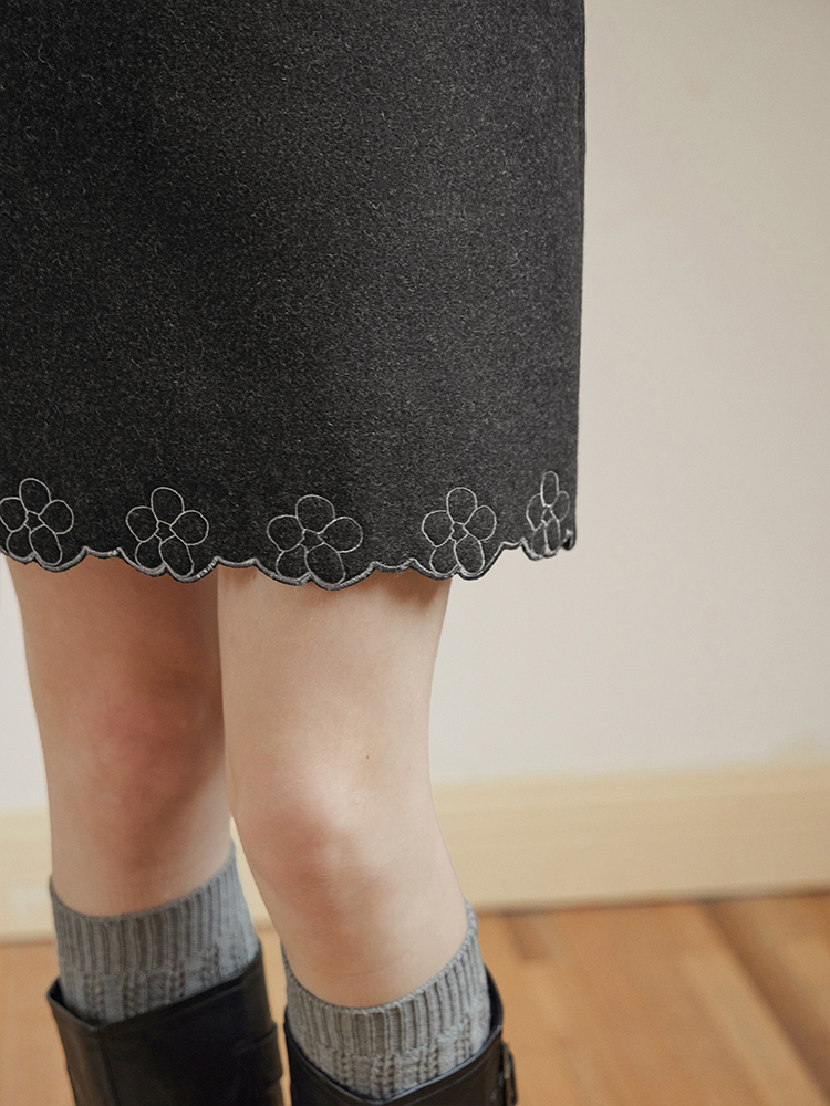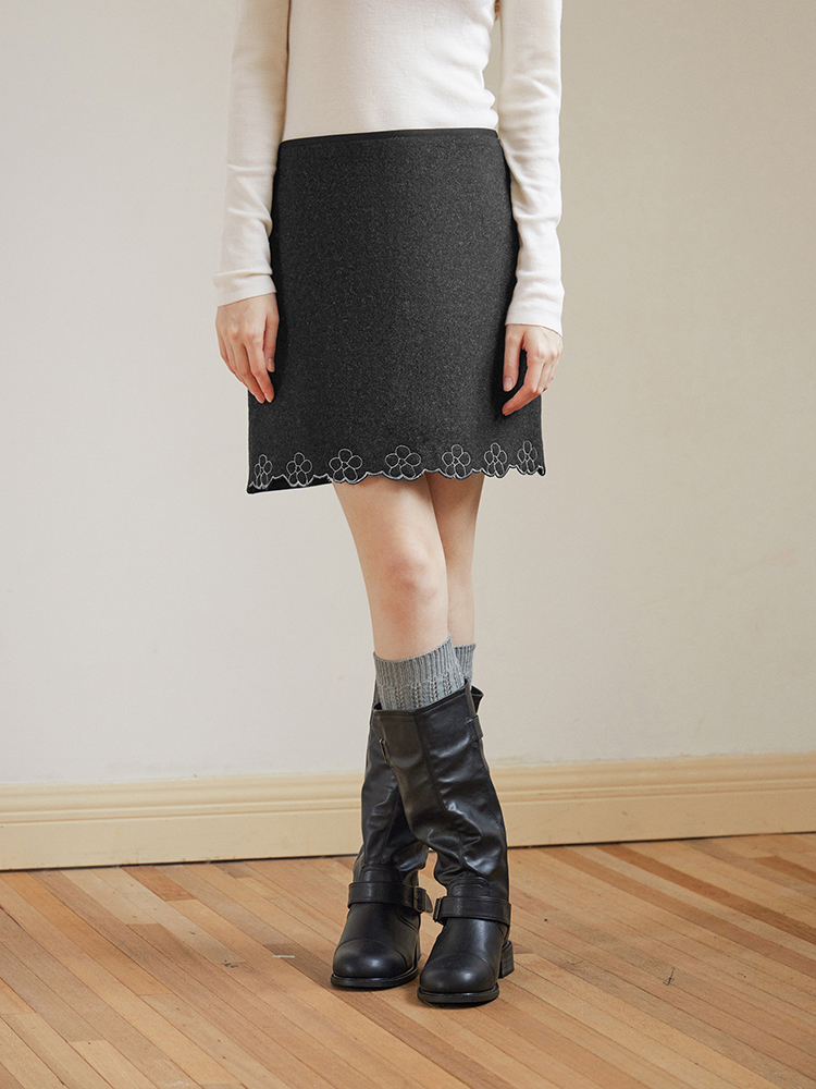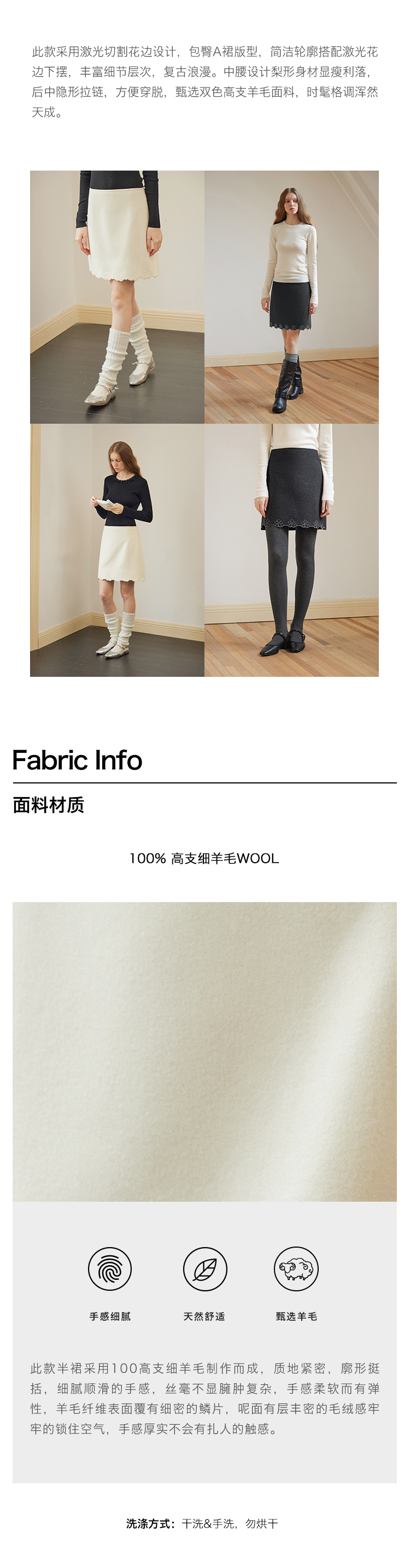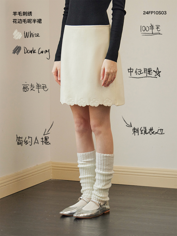 ForPoem 现货 24/FW原创设计秋冬100羊毛刺绣花边毛呢半身裙