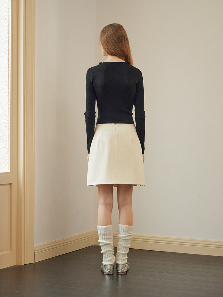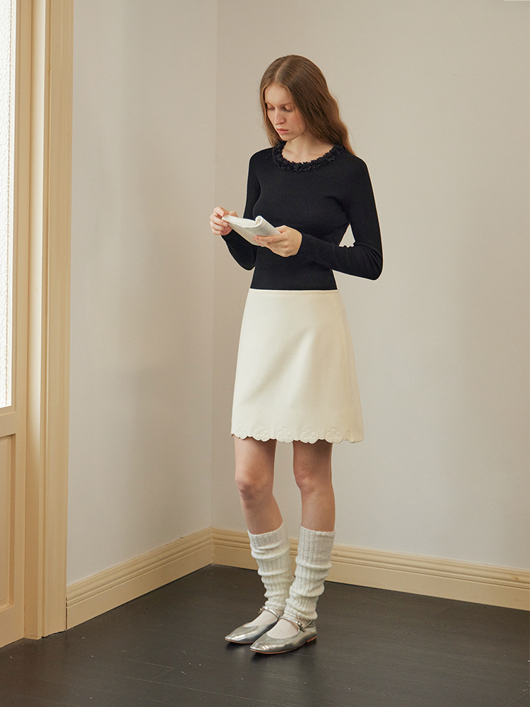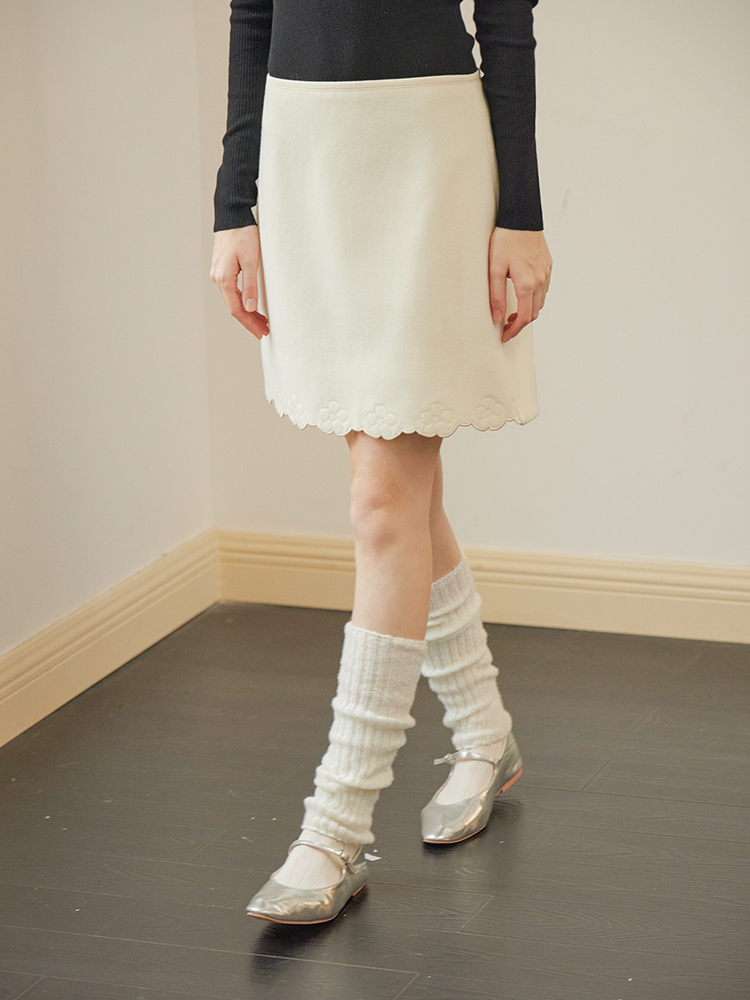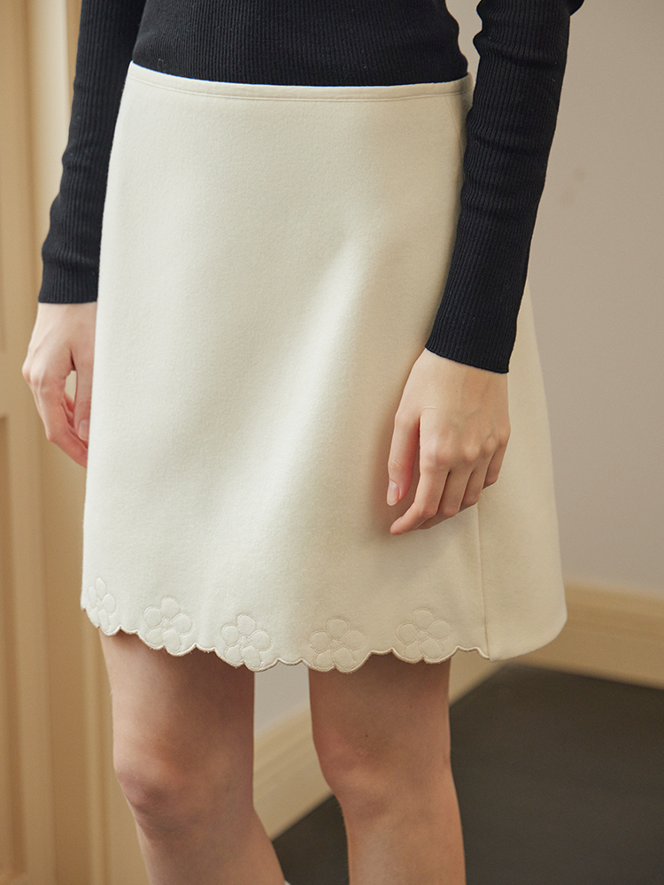 ForPoem 现货 24/FW原创设计秋冬100羊毛刺绣花边毛呢半身裙