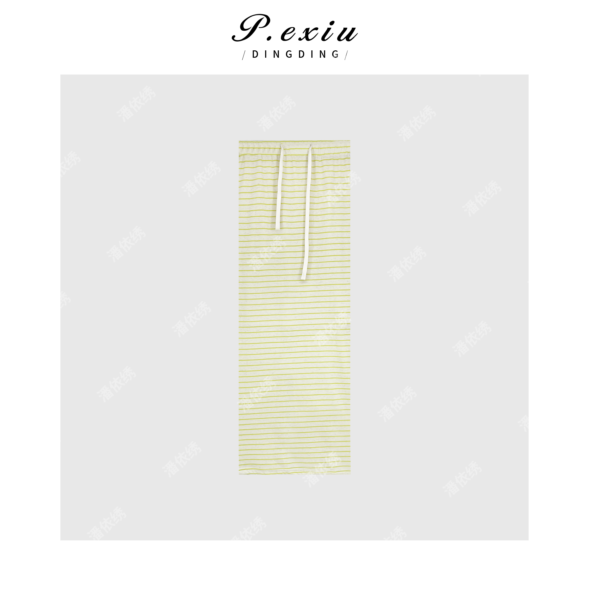 04-1潘依绣丁丁宠粉条纹休闲半身裙抽绳长款韩系Q55669