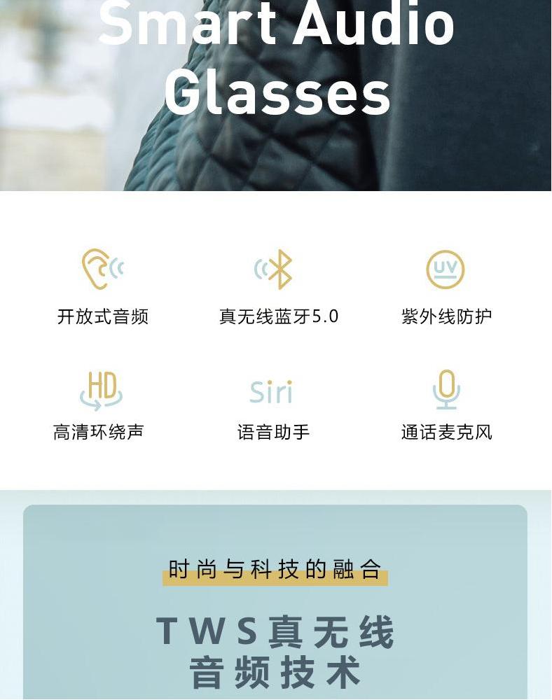 【JBL 音悦范 同厂代工】Beshinde贝圣德 智能音频眼镜 环绕式便携音频眼镜