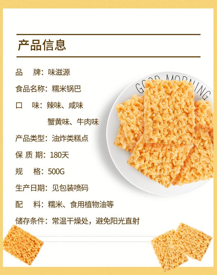 【味滋源】糯米锅巴 蟹黄咸味辣味牛肉味 糯米香辣锅巴 安徽特产小包装休闲零食品