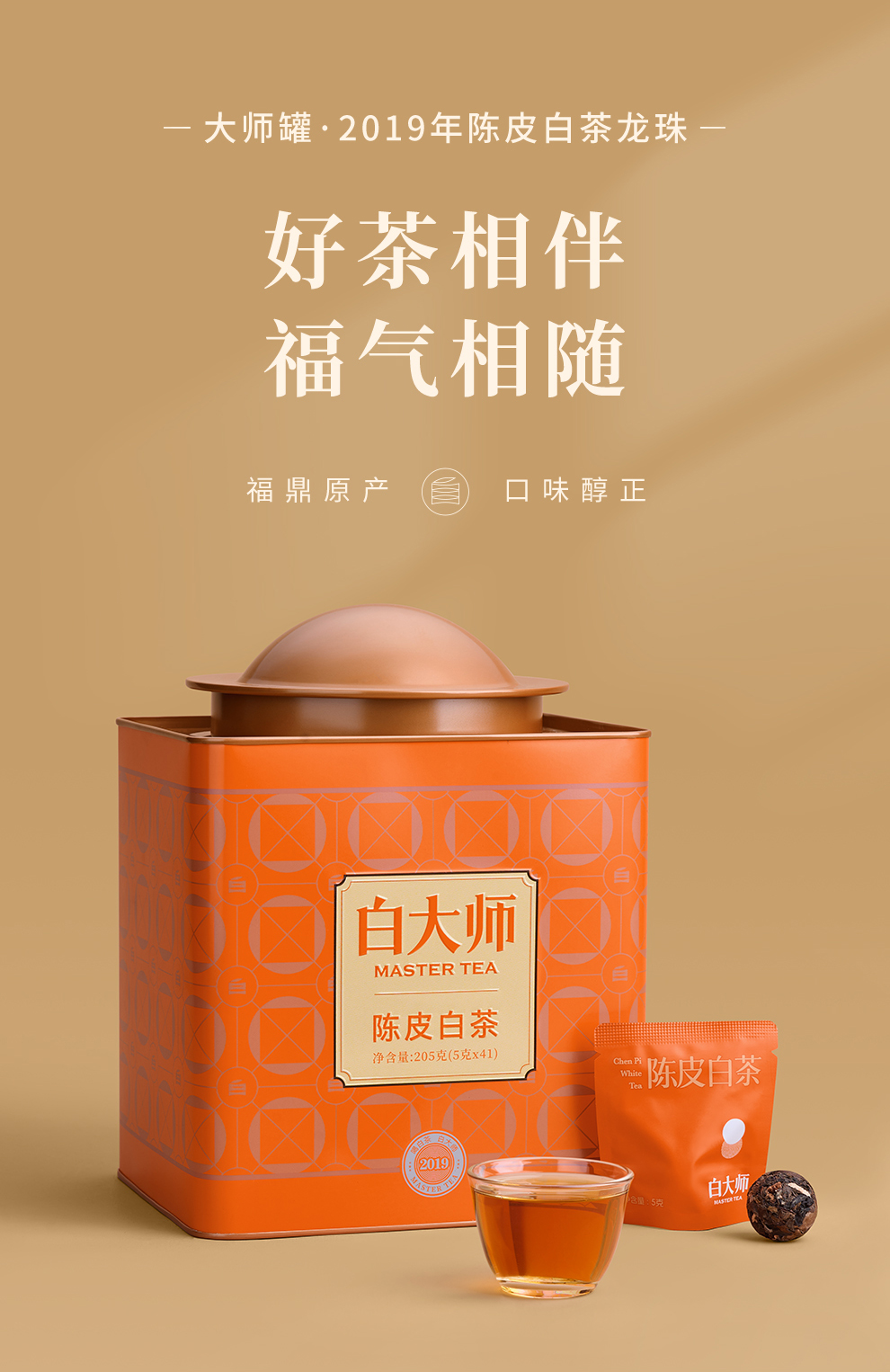 白大师白茶福鼎白茶一叶倾城大师罐2019年陈皮白茶寿眉白茶组合