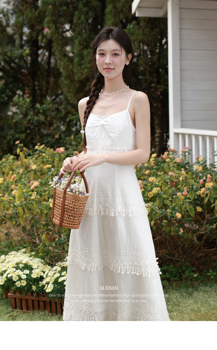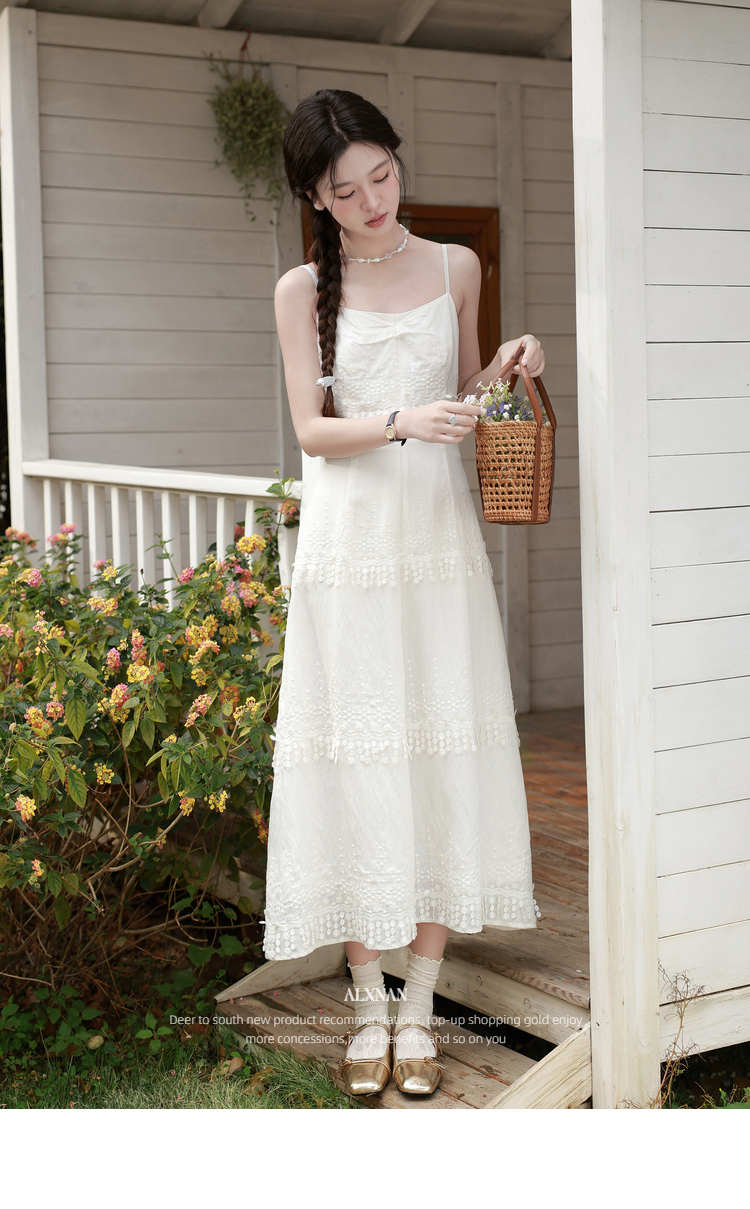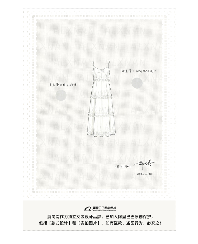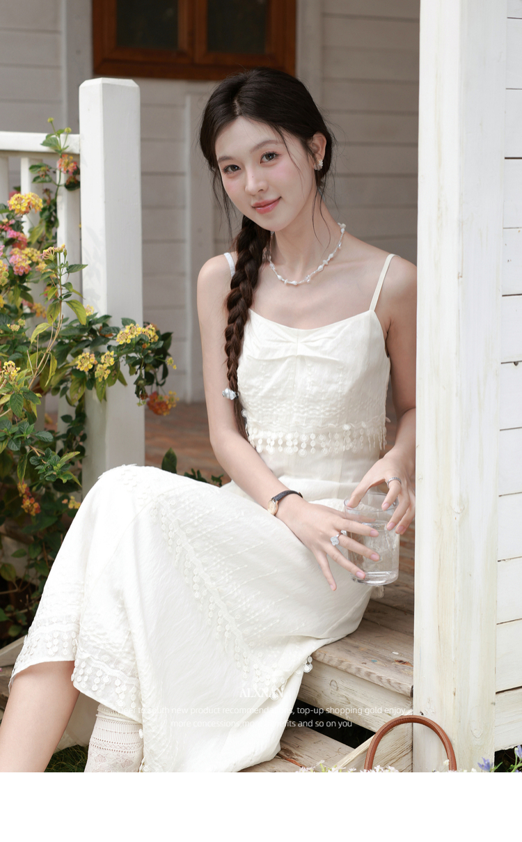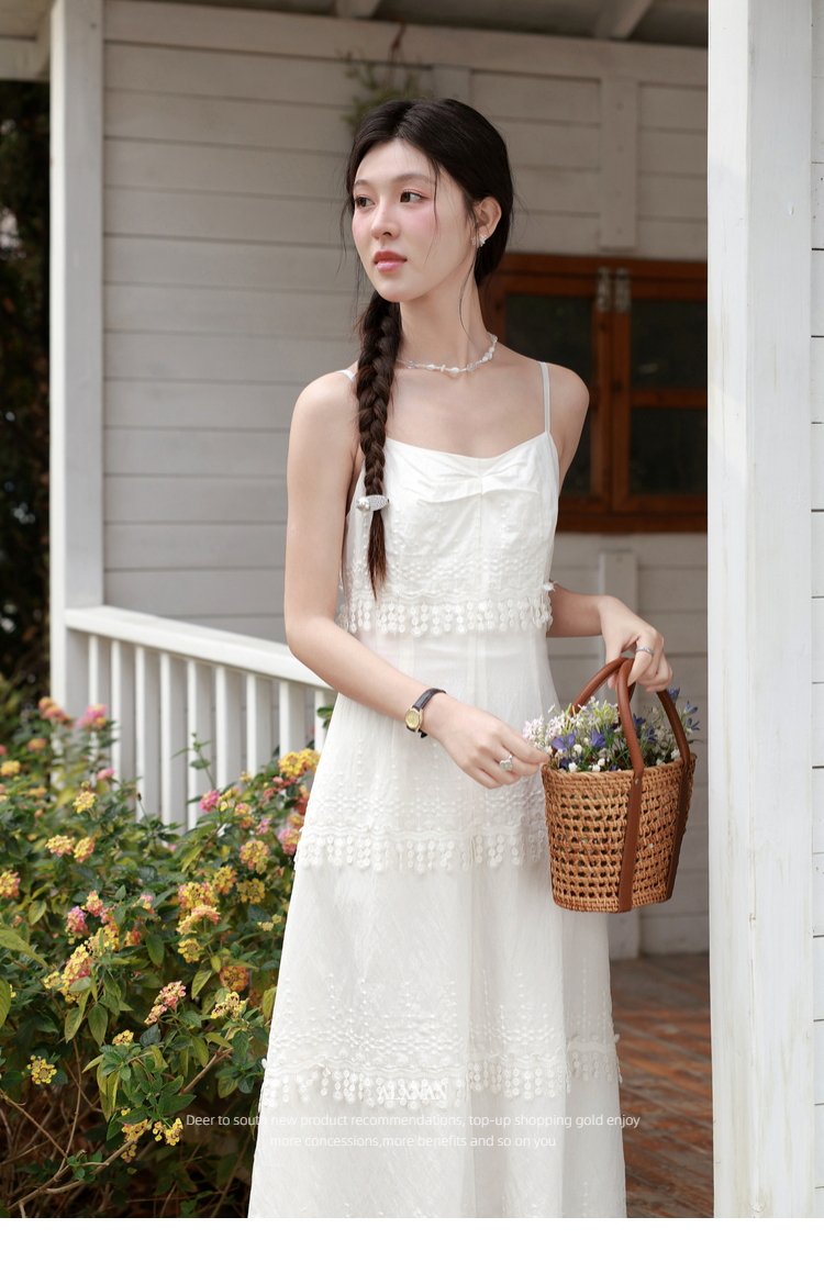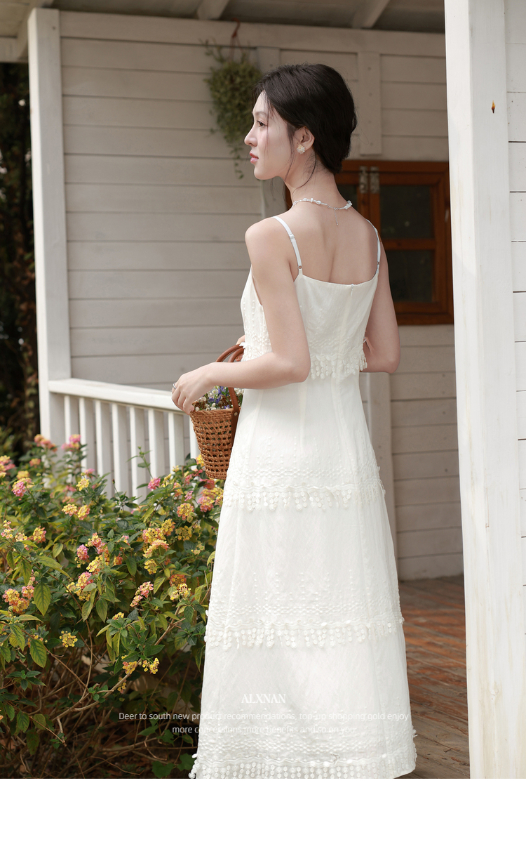 鹿向南「悸动的时光」法式吊带杏色连衣裙女春夏新款设计感长裙子