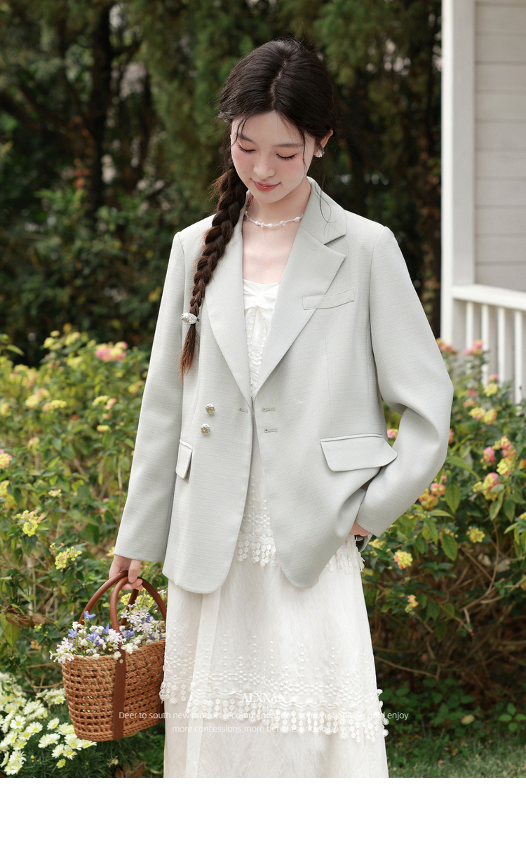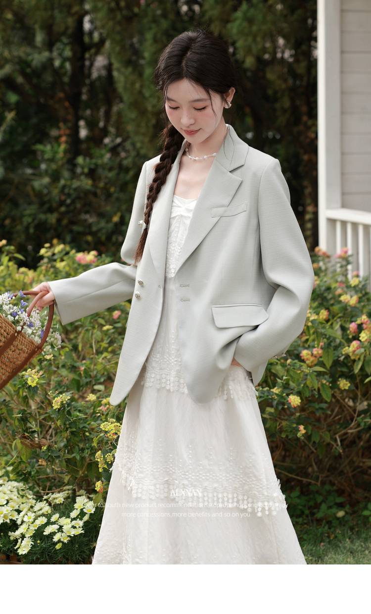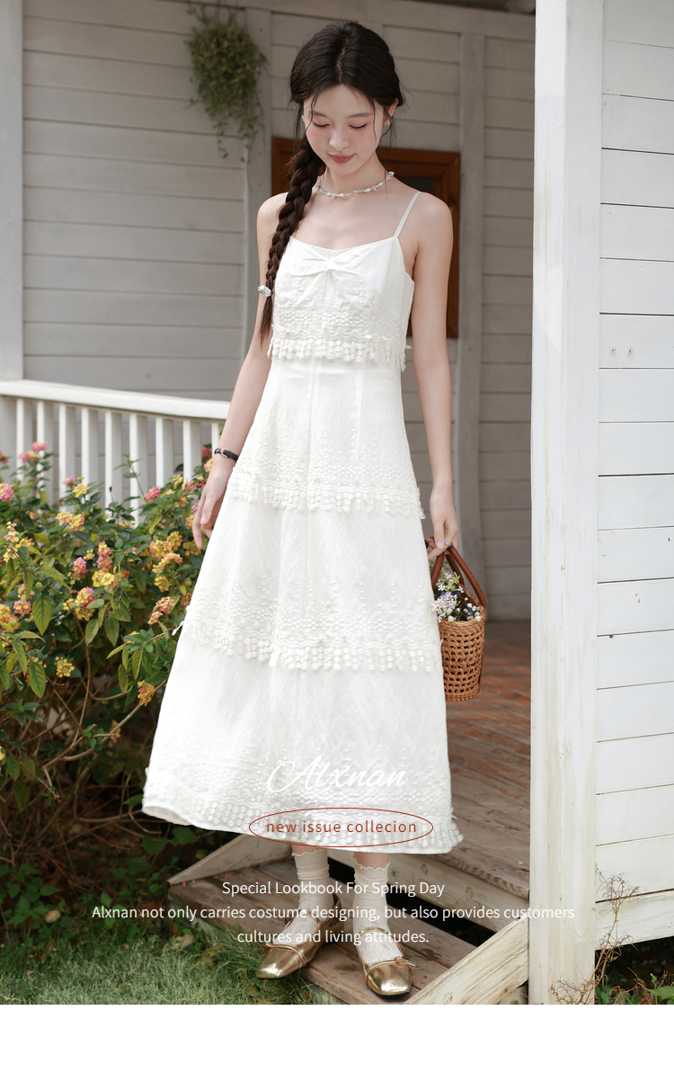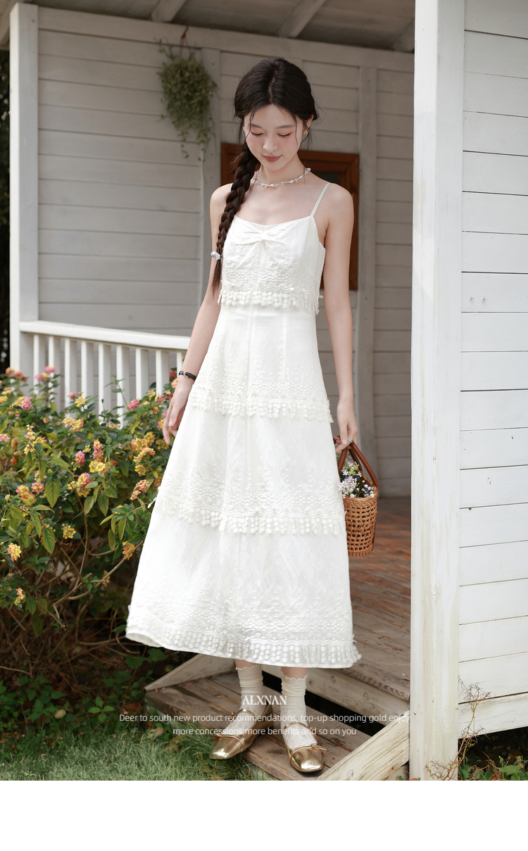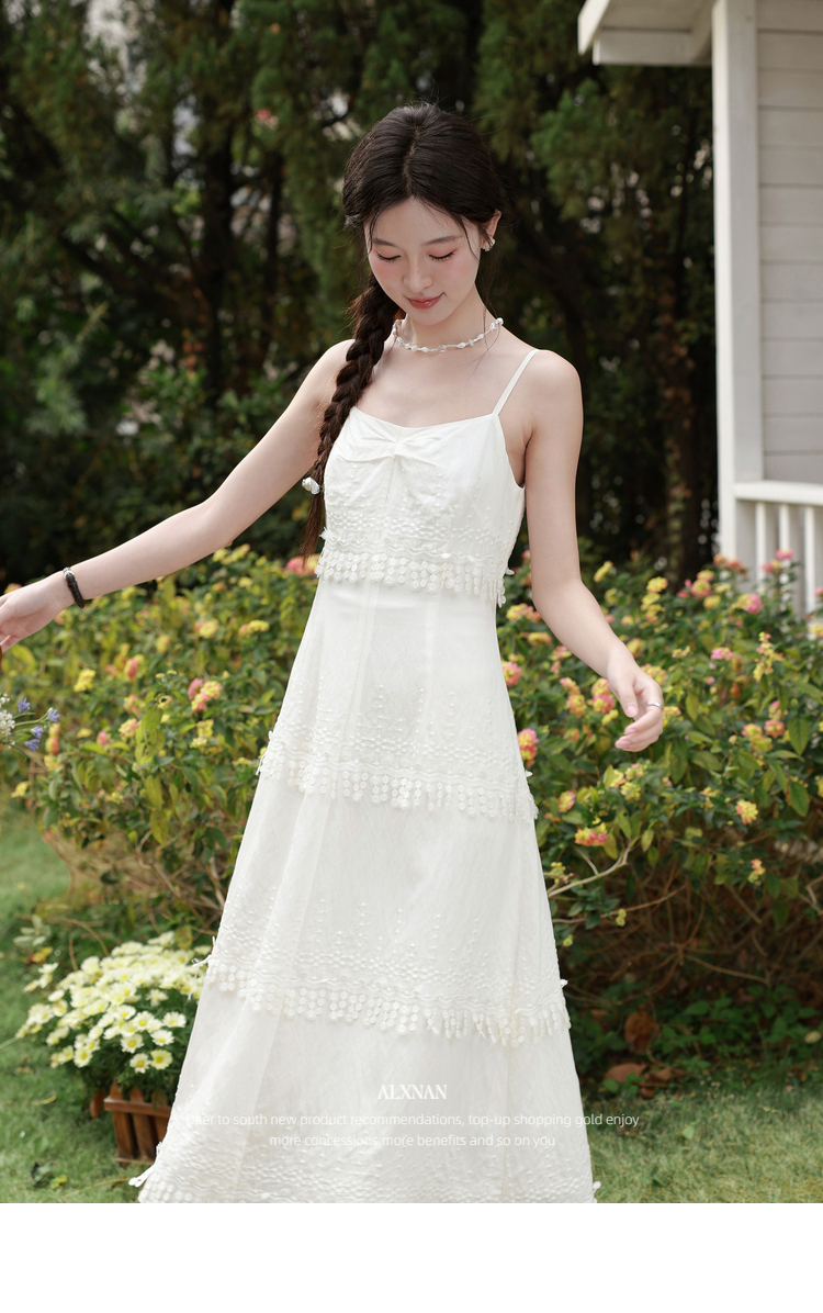 鹿向南「悸动的时光」法式吊带杏色连衣裙女春夏新款设计感长裙子