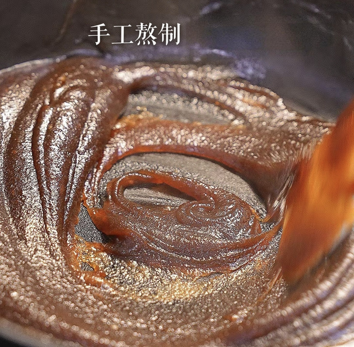 漫长熬煮过程这一步看似简单❌ 实则需要十足的耐心与经验 火候的掌控至关重要 火大了容易焦糊,失去原本的香甜🤭 火小了,熬煮时间过长,又会影响口感和质地 经过经验丰富的老师傅熬制出来的内馅粘稠 👍 表面和边缘轻微上色 搭配采用古法开酥技艺的外皮 微甜的内馅和酥软的饼皮在舌尖化开🤭 软糯香甜 特别好吃 这就是手工中式糕点的魅力~