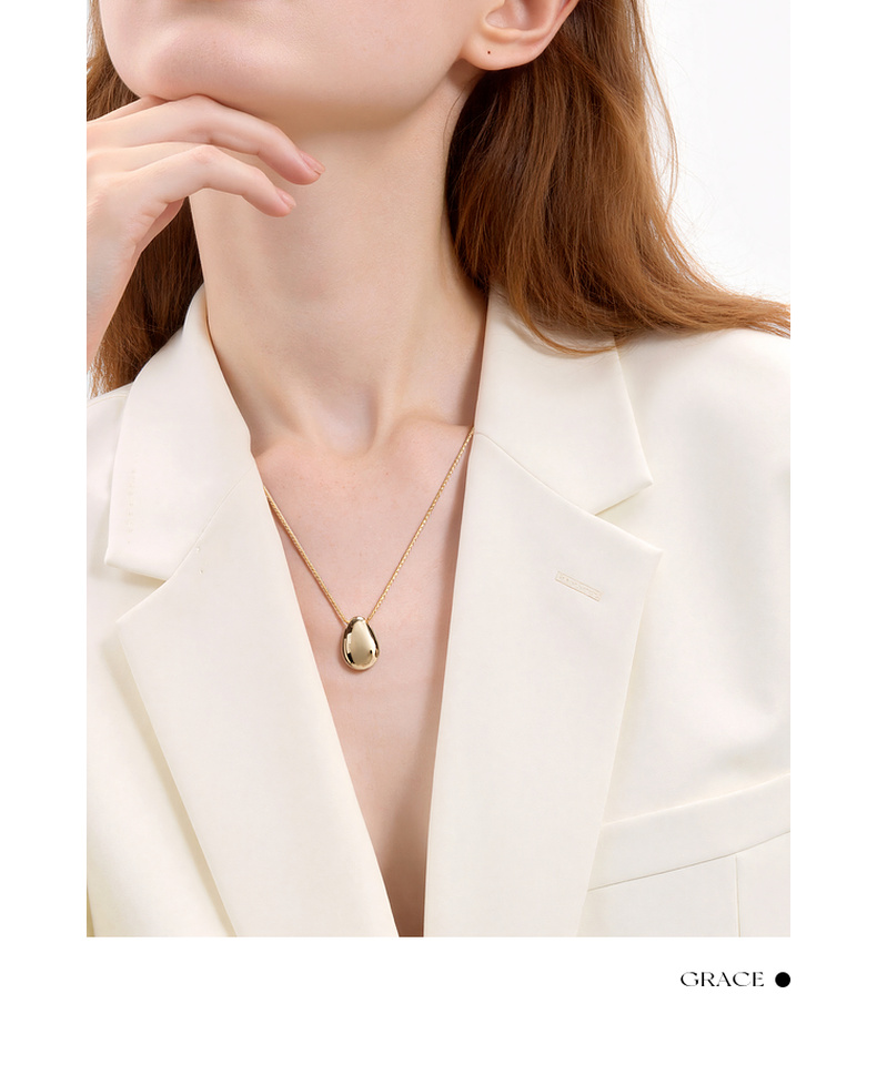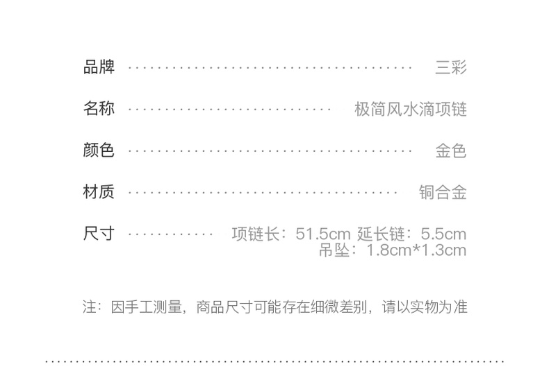 三彩2026新款极简风亮面水滴吊坠项链编织金属高级通勤约会