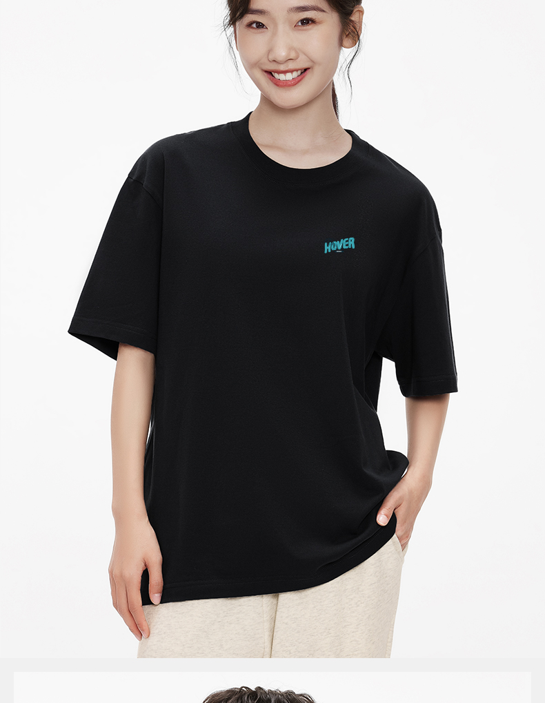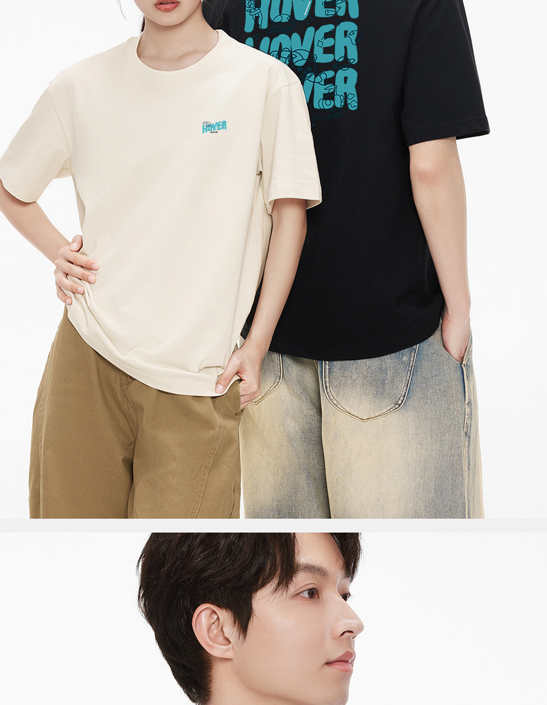 「棉的美学」100%棉基础款休闲宽松T恤2025夏季字母印花百搭短袖
