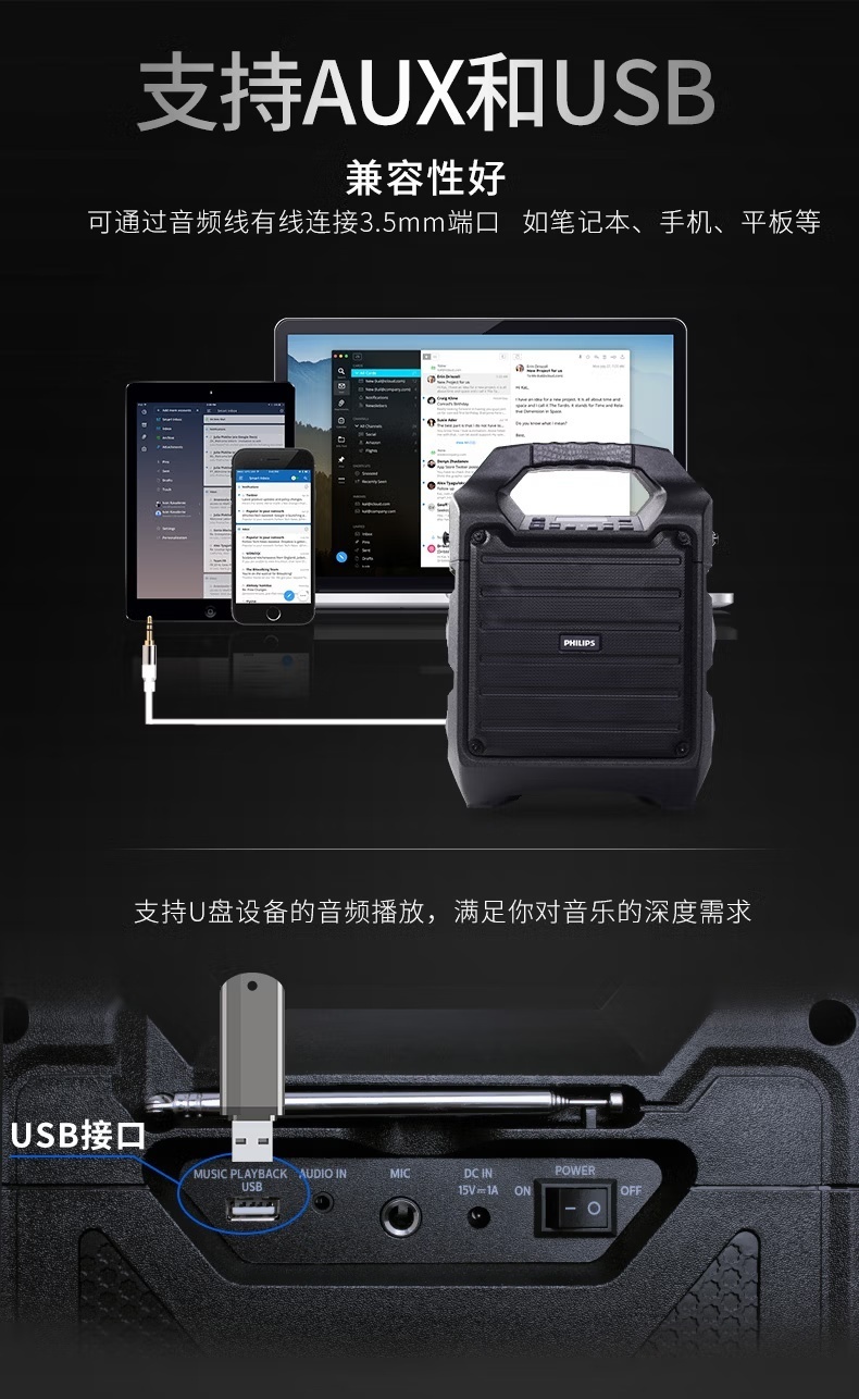 PHILIPS/飞利浦 SD55 便携手提户外广场舞蓝牙音箱
