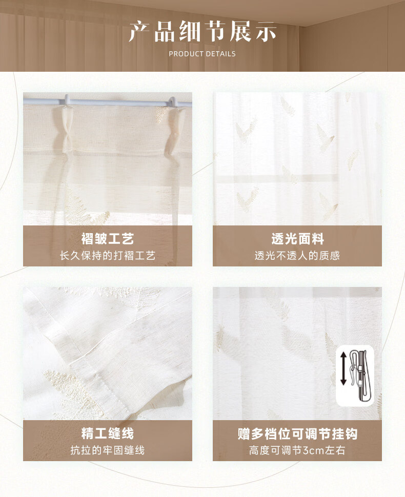NITORI宜得利家居透光透气卧室新款窗纱半定制 EO窗纱 欧哈