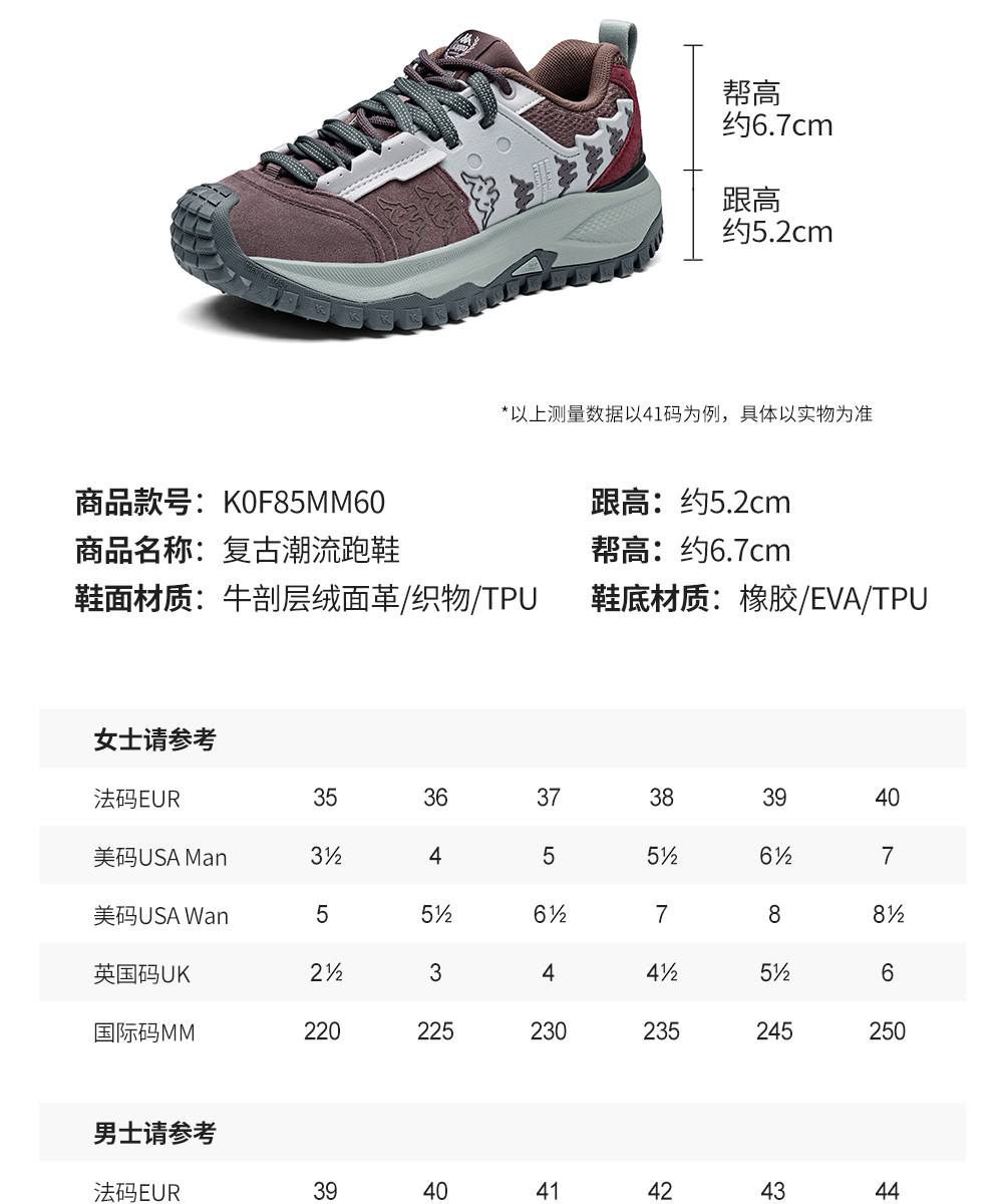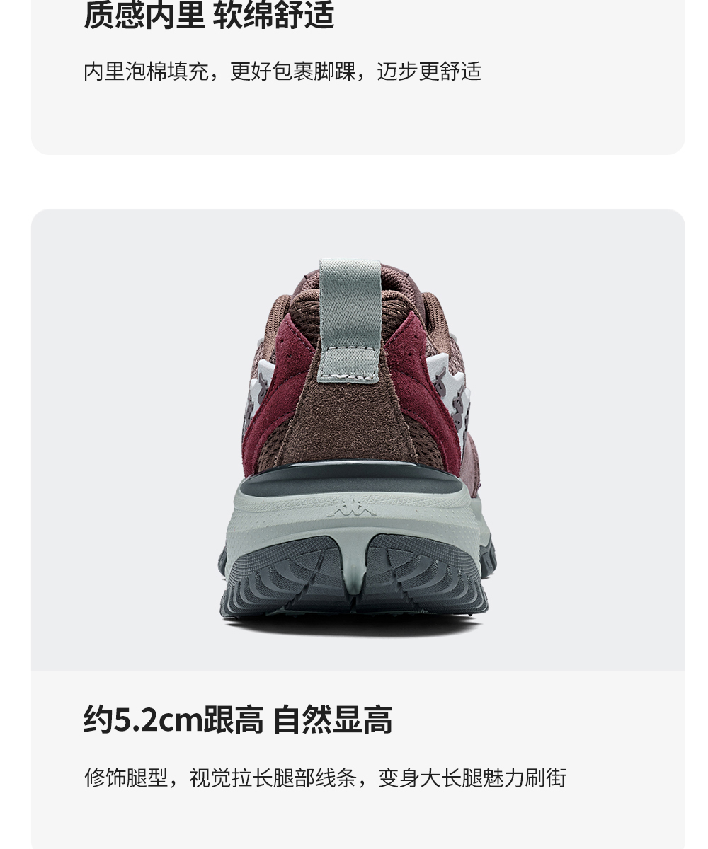 Kappa 运动鞋女2025新款复古休闲老爹鞋女厚底跑步鞋子K0F85MM60