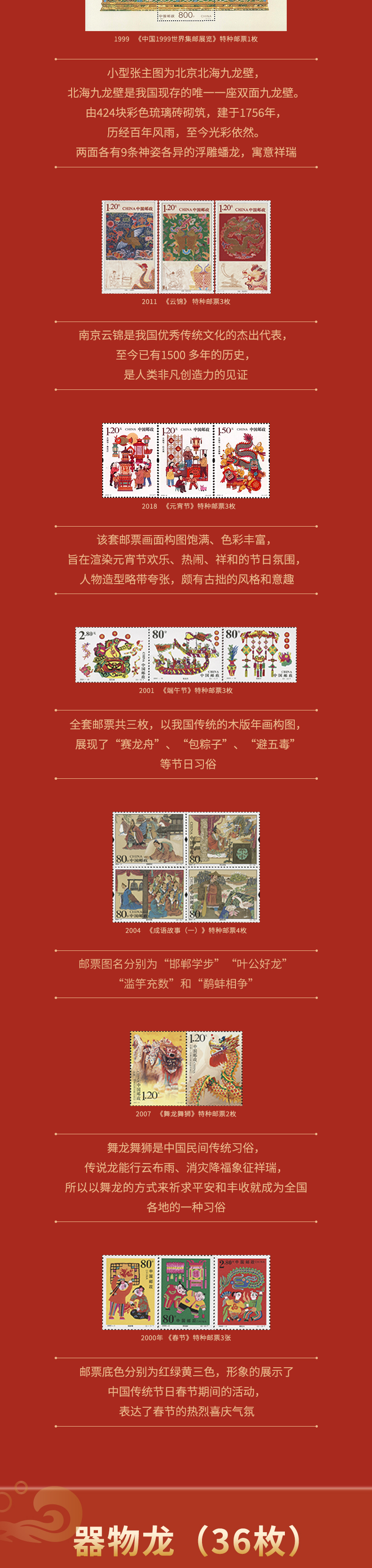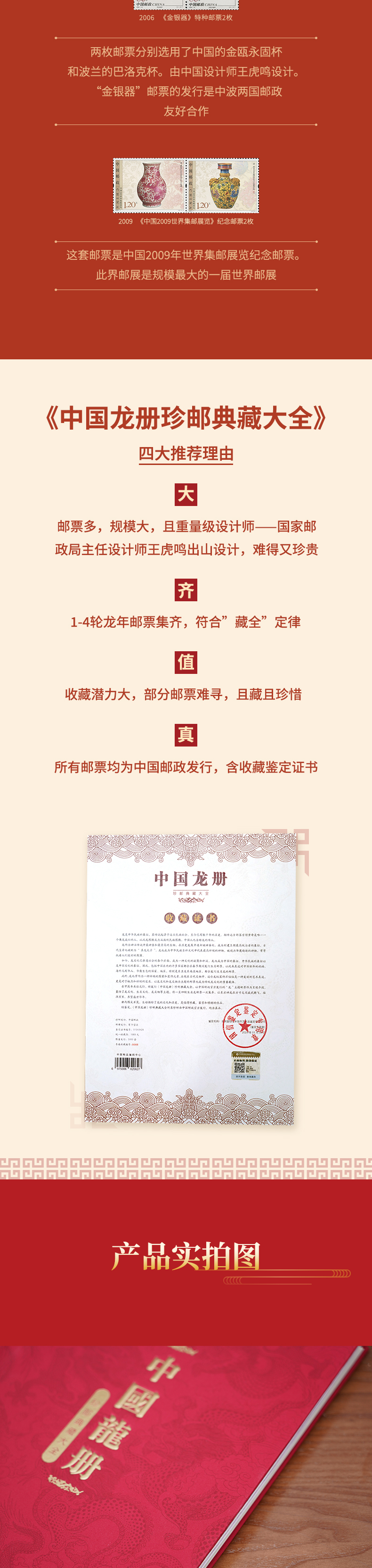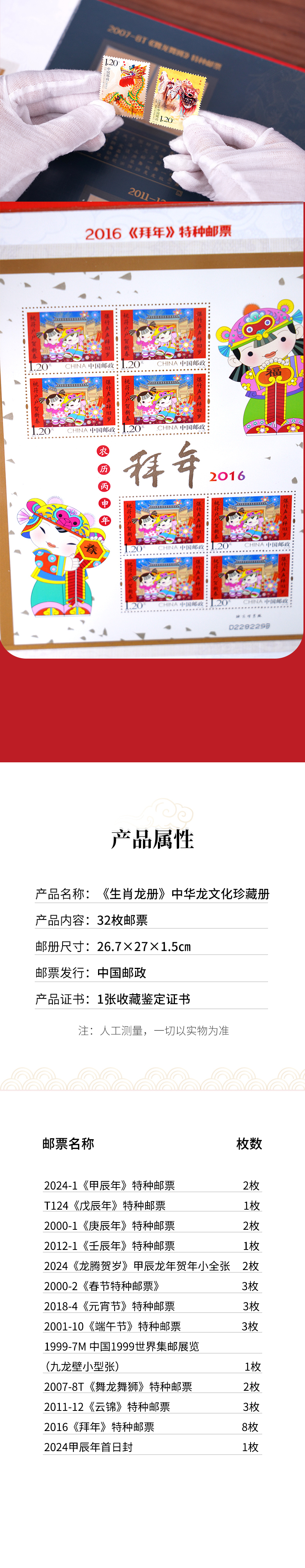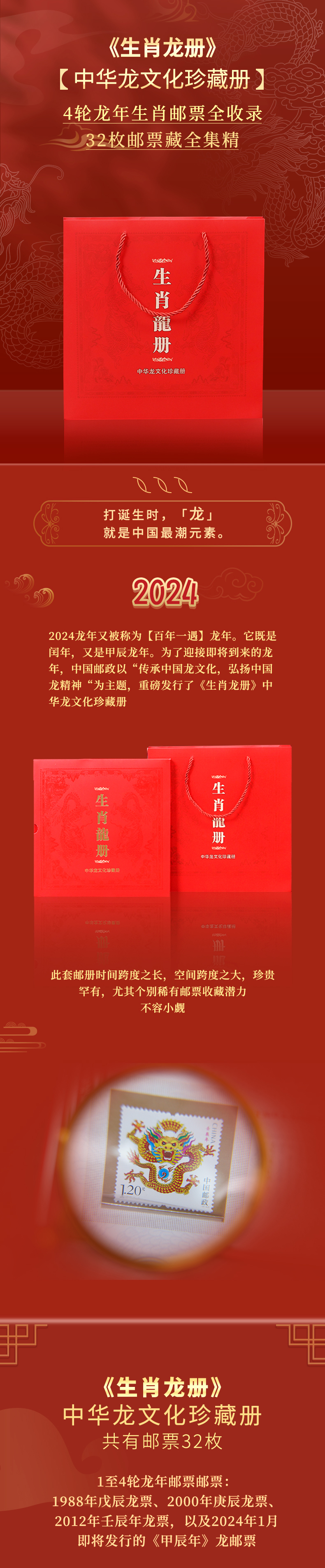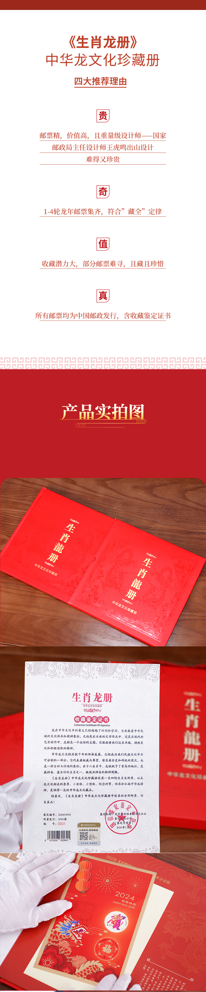 中国龙册珍藏大全 生肖龙册珍藏大全 邮票多 规模大 所有邮票均为中国邮政发行 含收藏鉴定证书