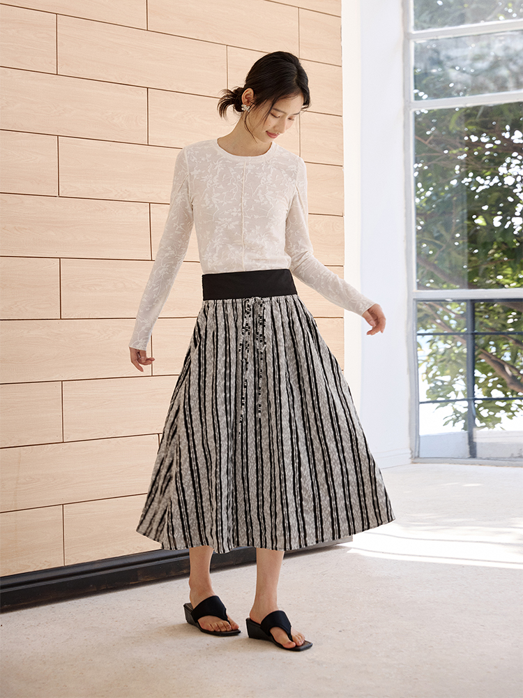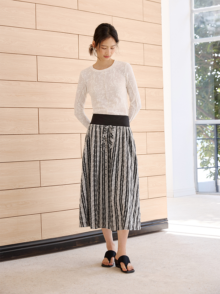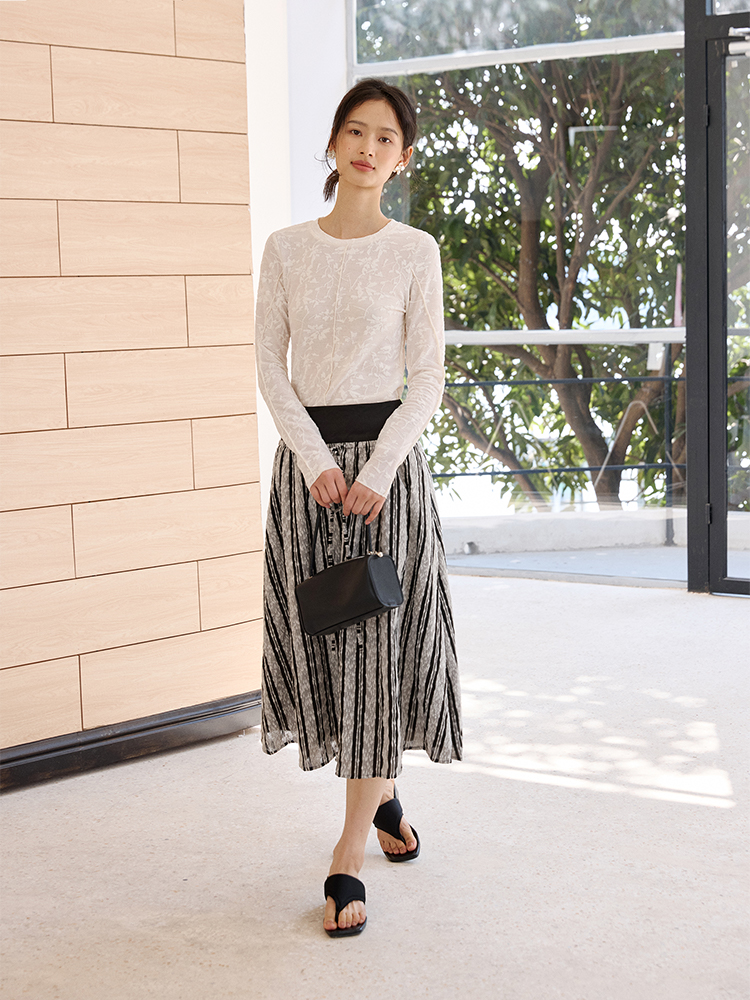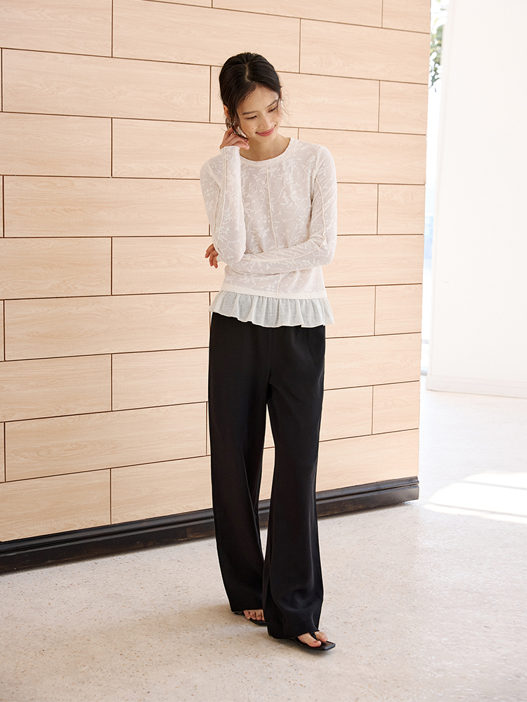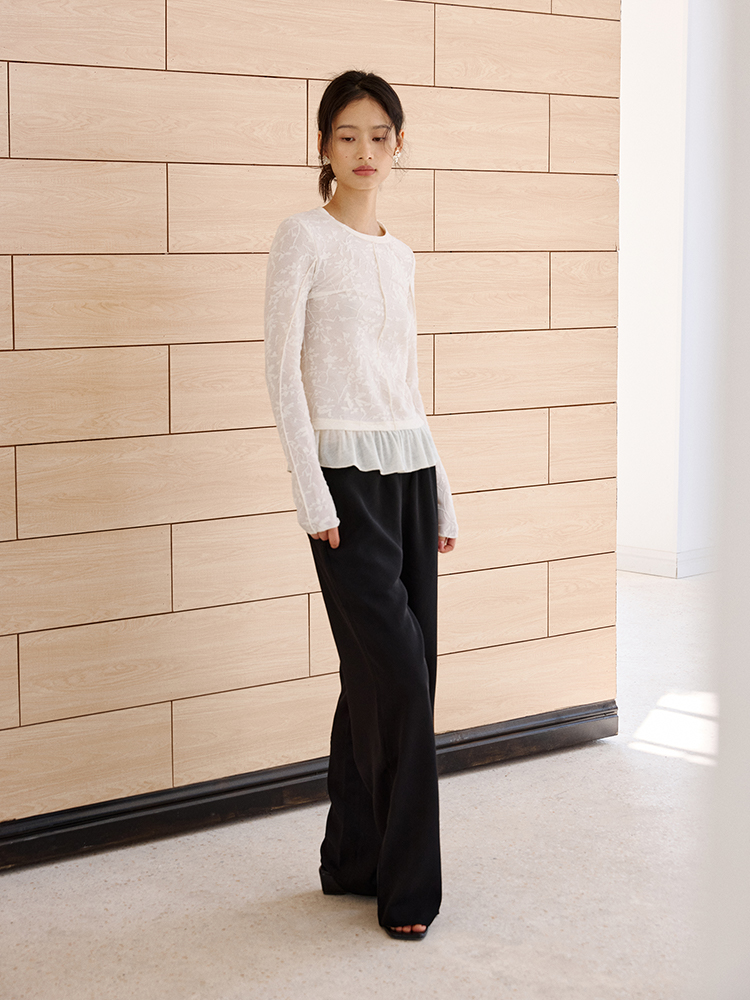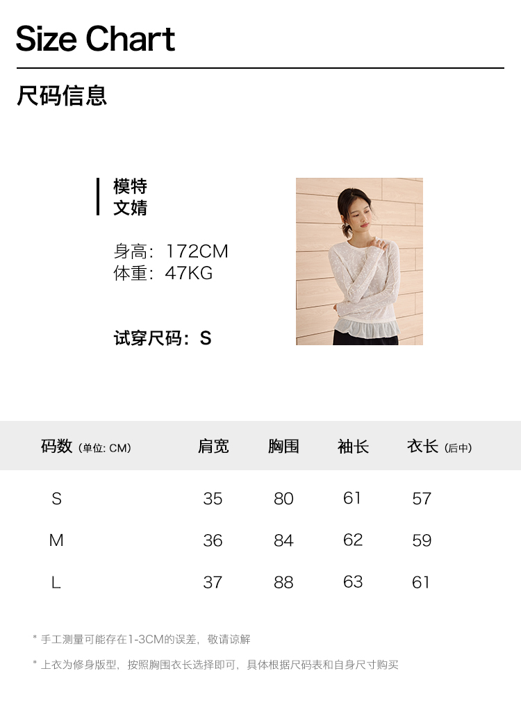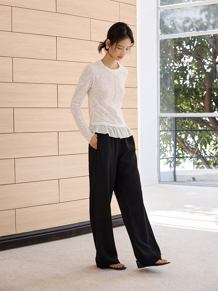 ForPoem 现货 25/SS原创设计微透花朵肌理荷叶边下摆修身肌理打底衫