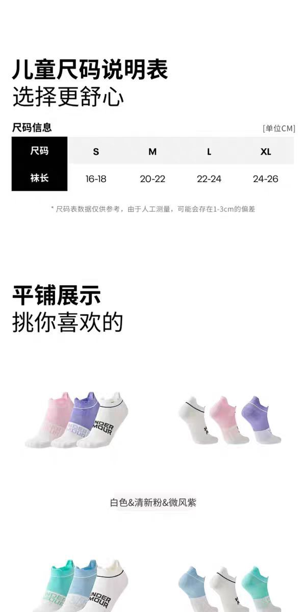 【三双装】Under Armour KIDS透气弹力船袜262392941