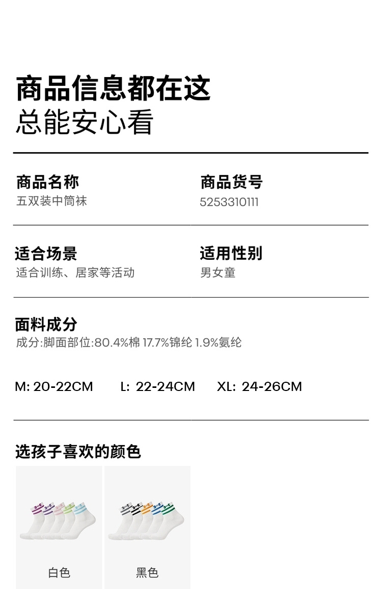🔺第十款:【五双装】Under Armour KIDS透气弹力中筒袜5253310111