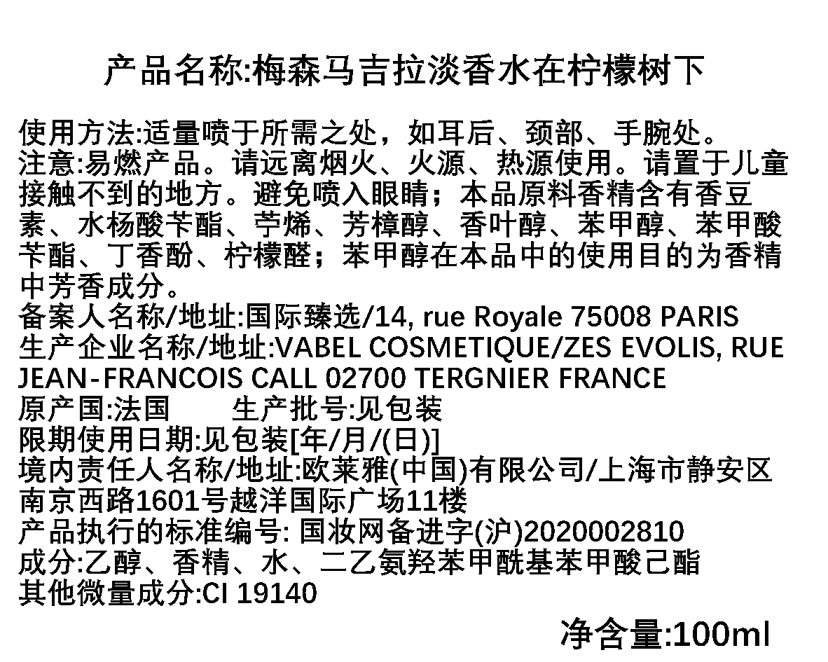 Maison Margiela梅森马吉拉 在柠檬树下香水
