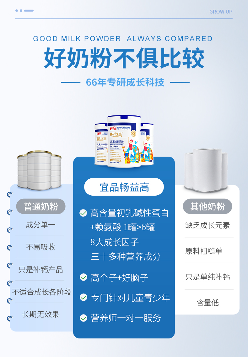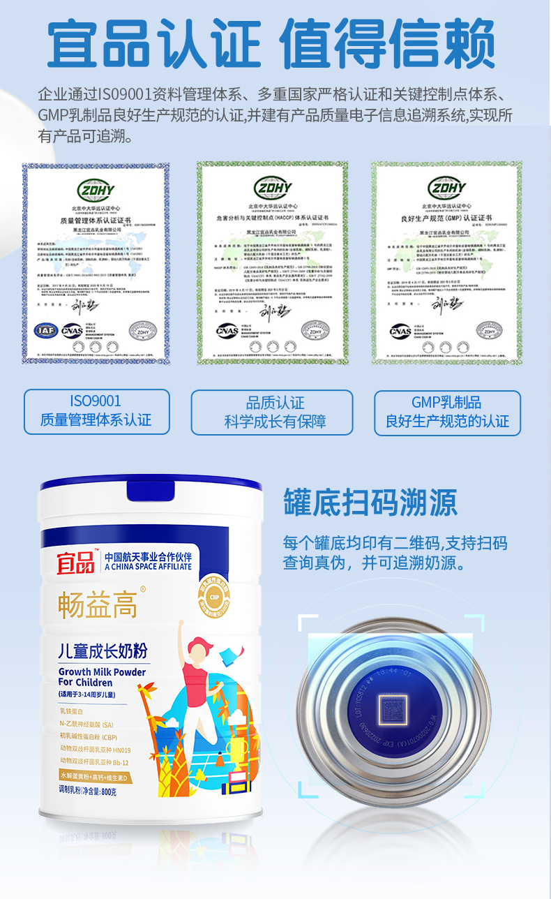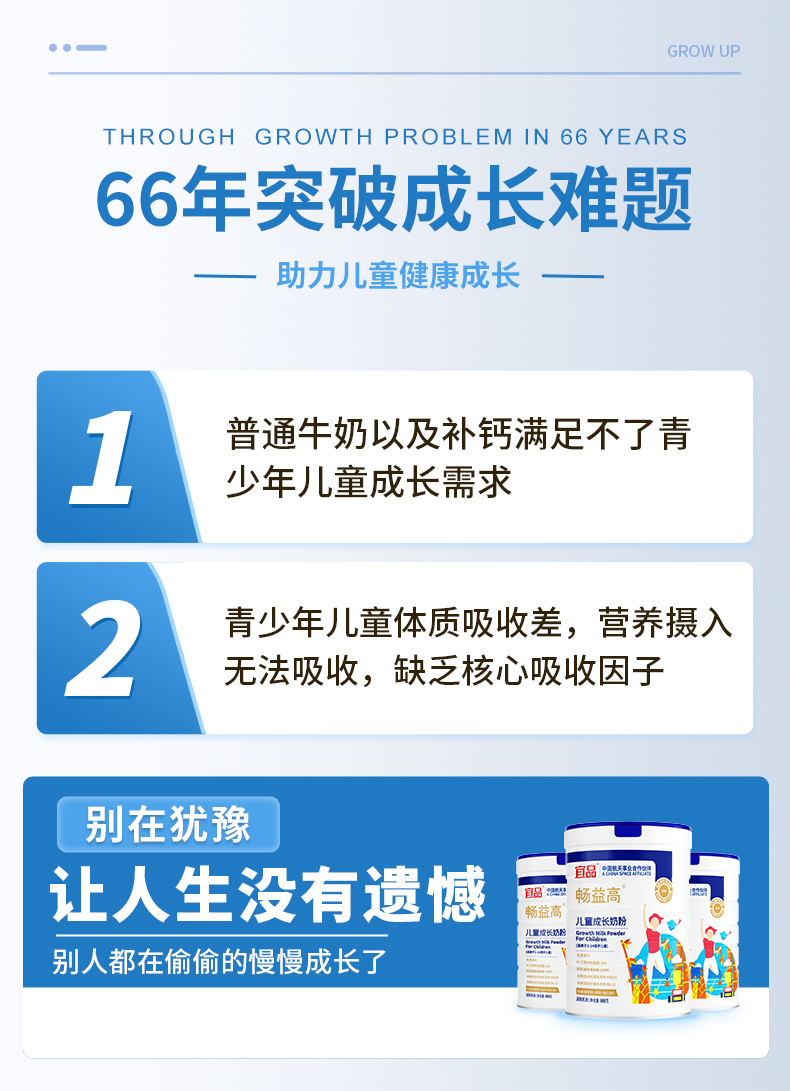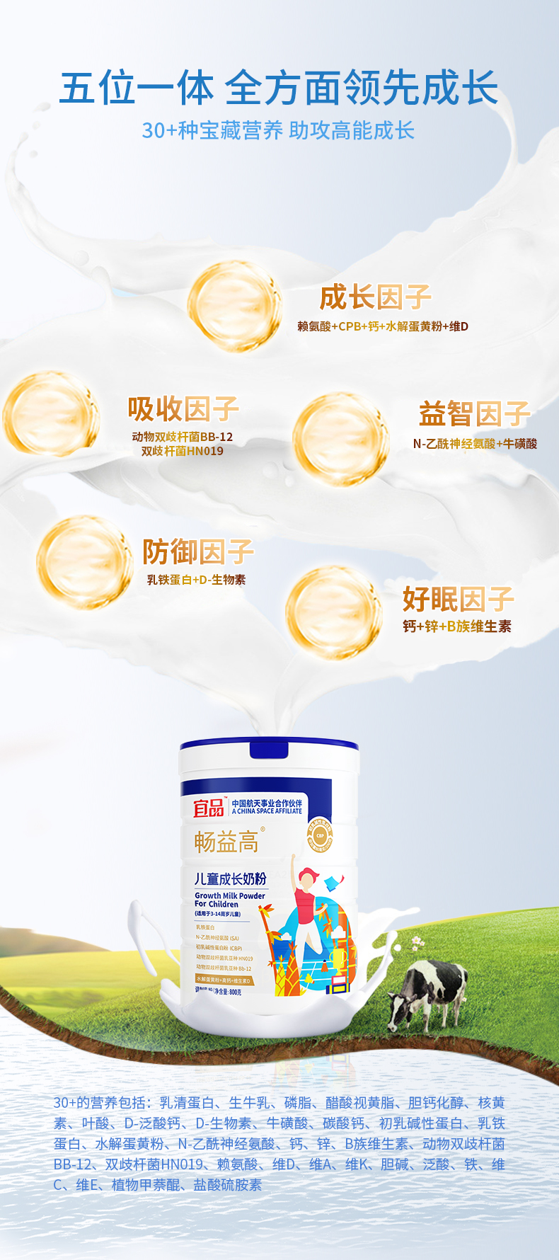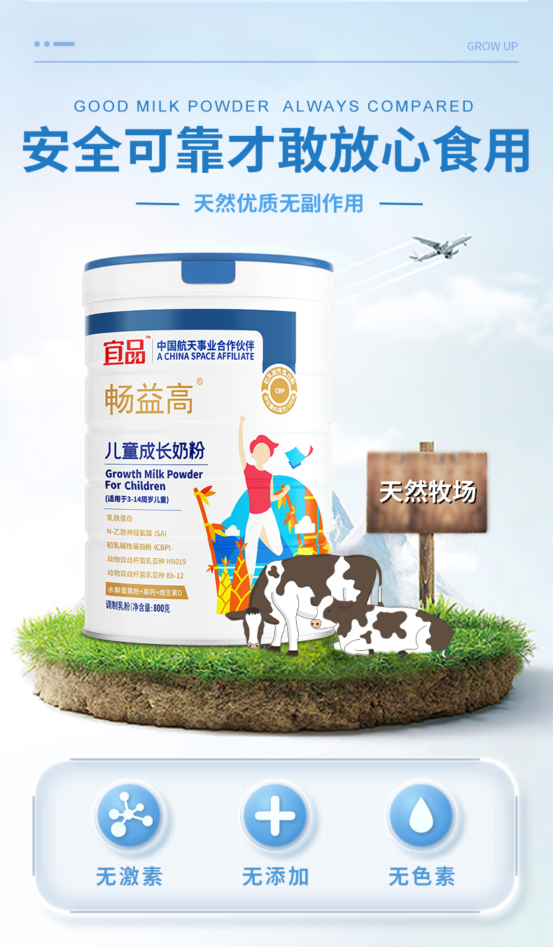 【积分兑换专享】宜品儿童成长奶粉畅益高800g青少年补钙特别添加乳铁蛋白3岁-14岁