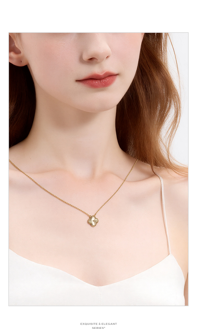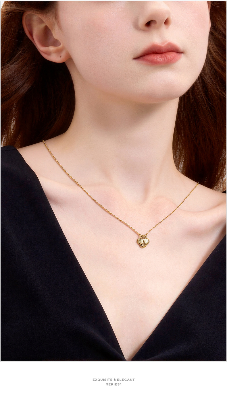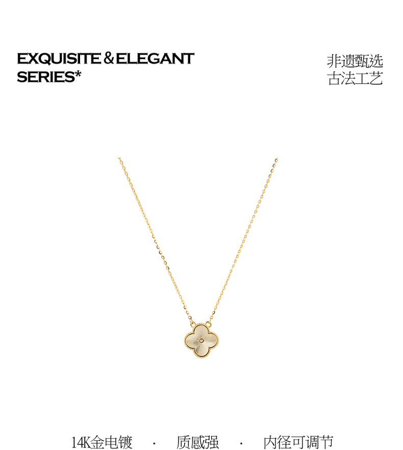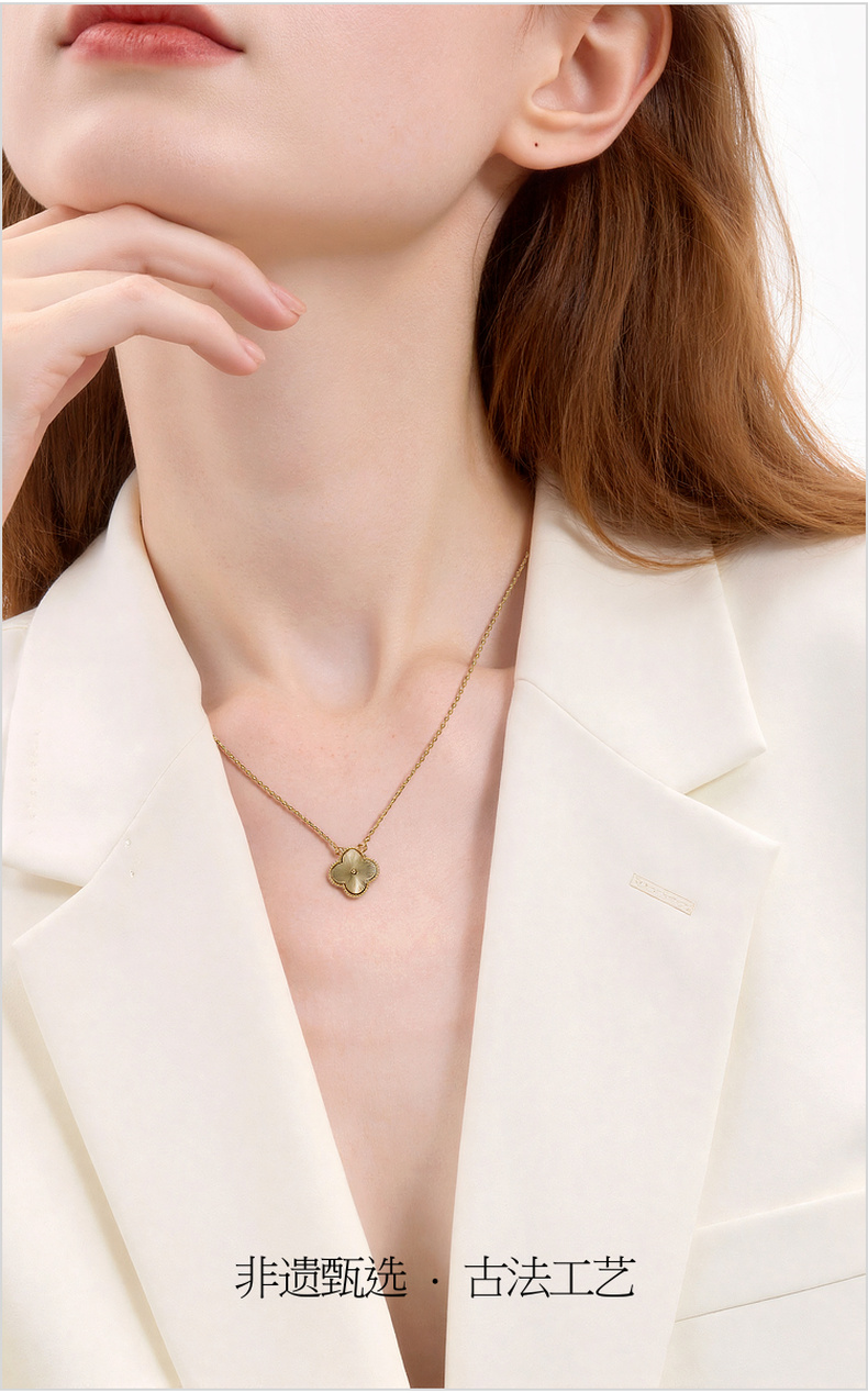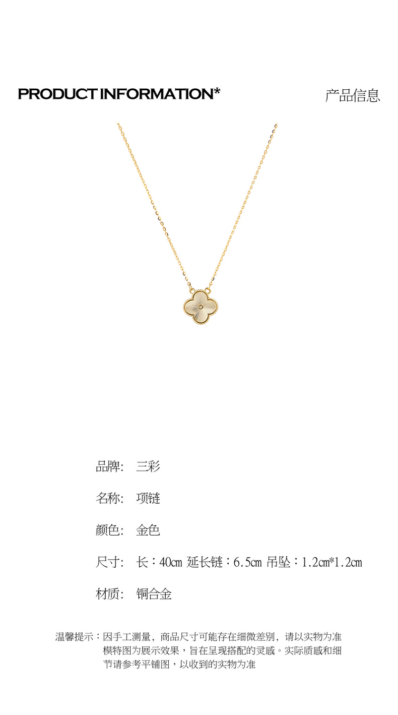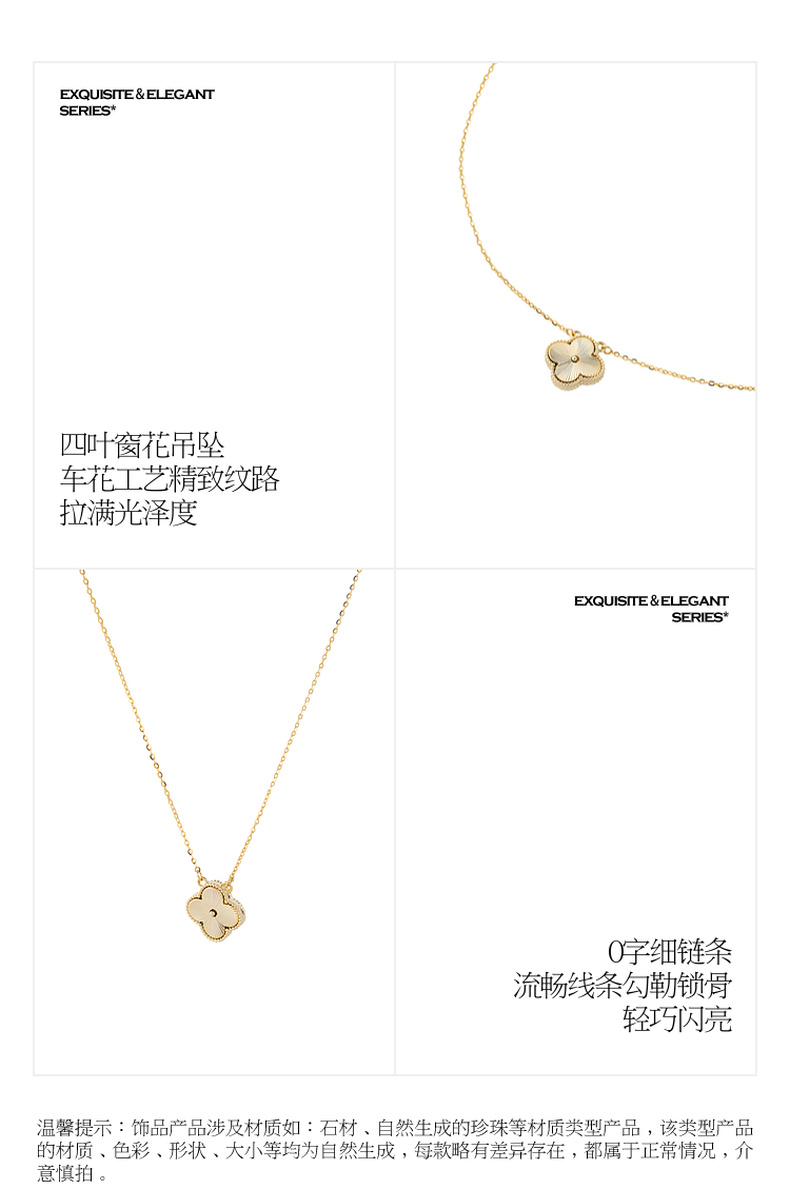 三彩2026新款四叶窗花吊坠细项链国风极简车花光泽感通勤锁骨链女