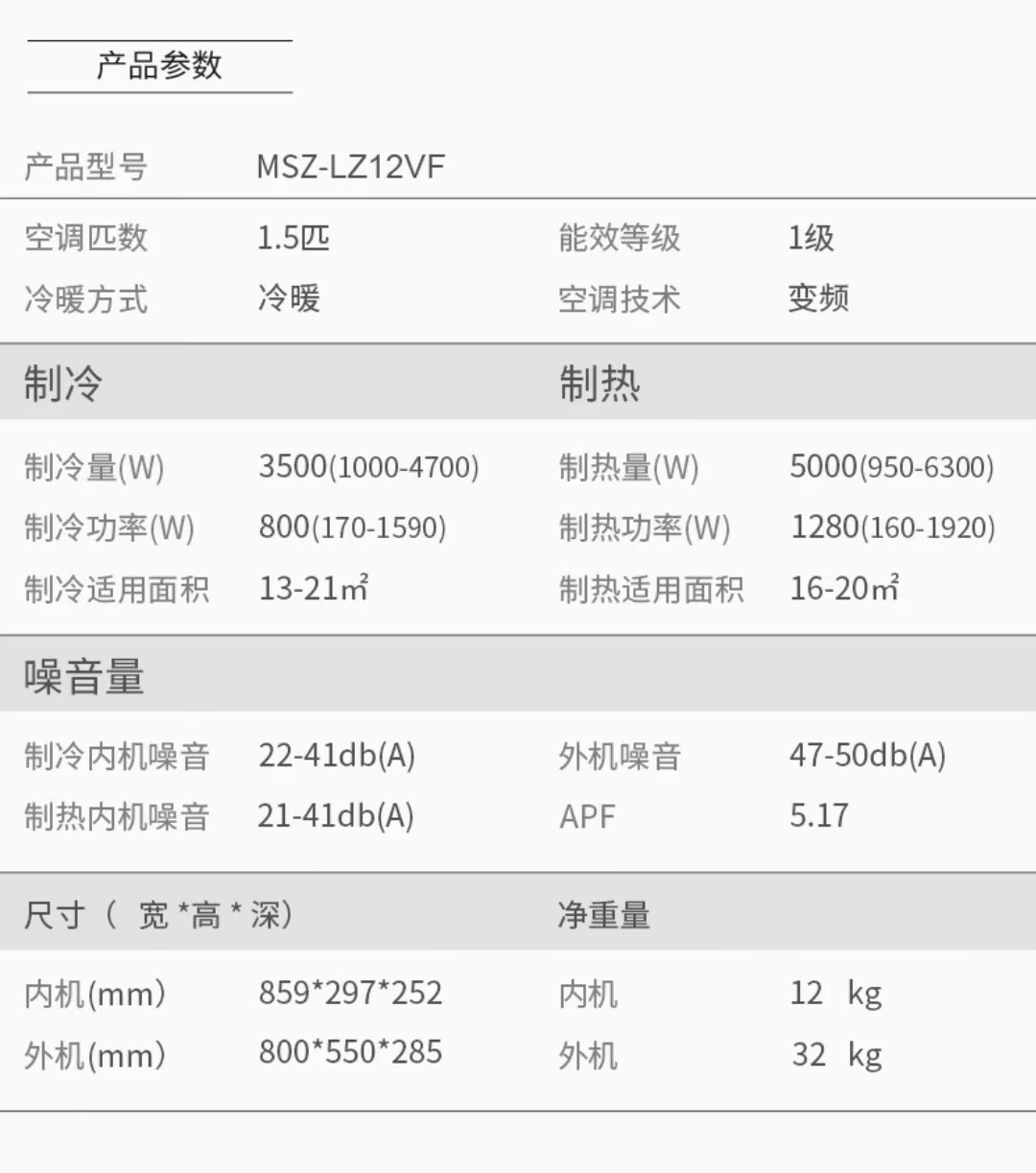 三菱电机/空调/MSZ-LZ12VF/1.5匹1级能效 挂式空调