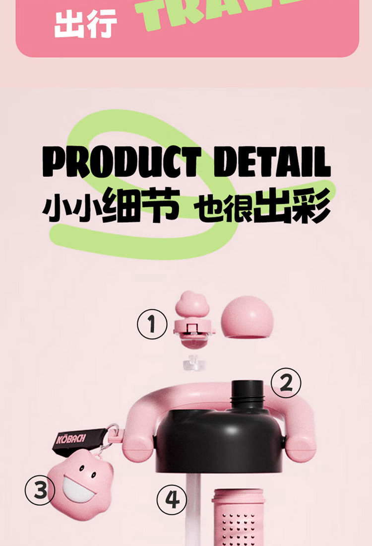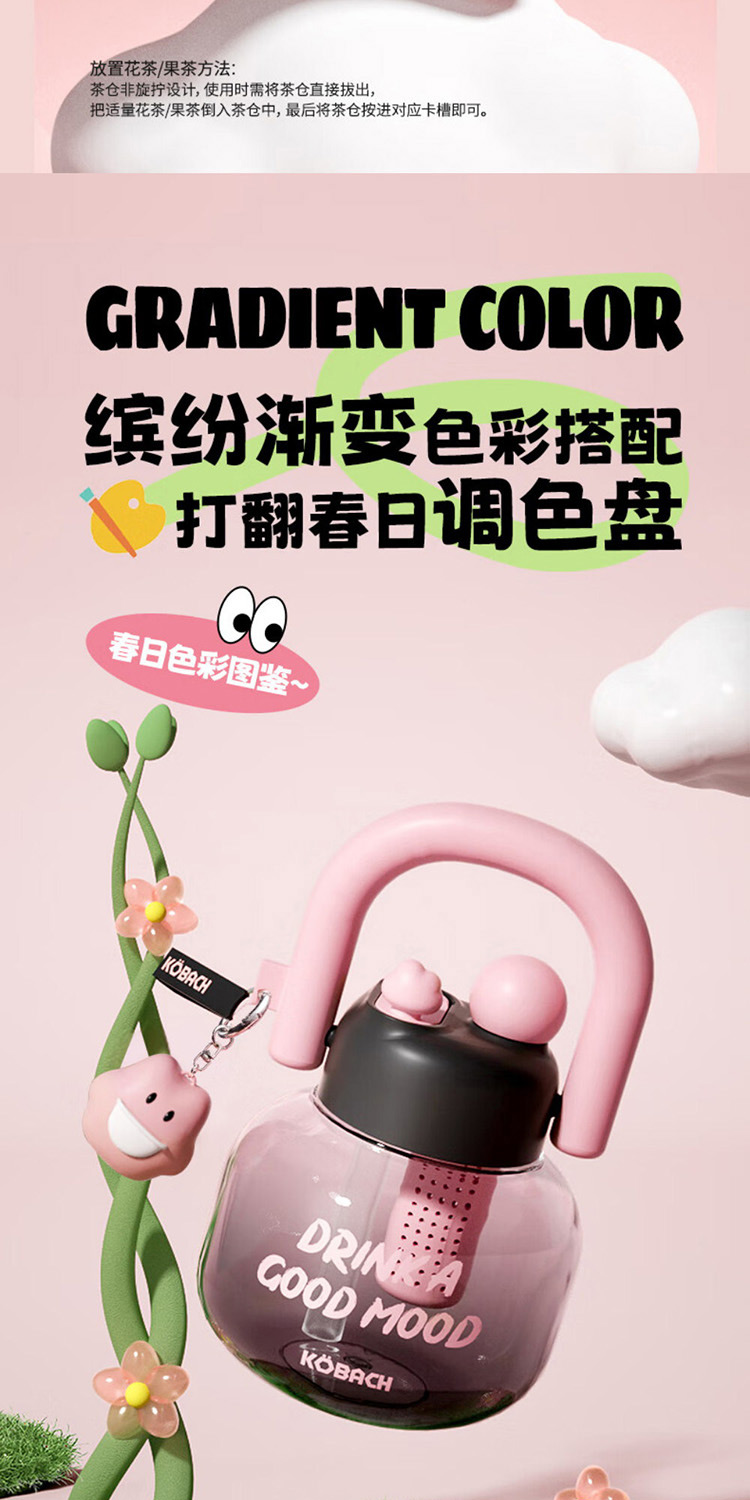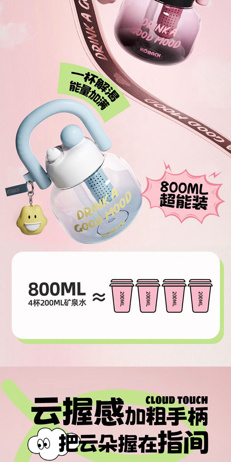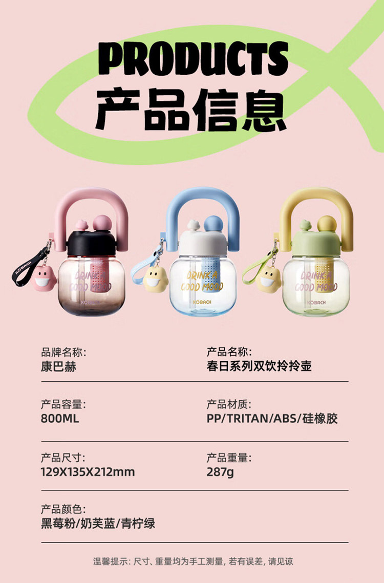 康巴赫春日系列双饮拎拎壶800mL黑莓粉(含背带绳)