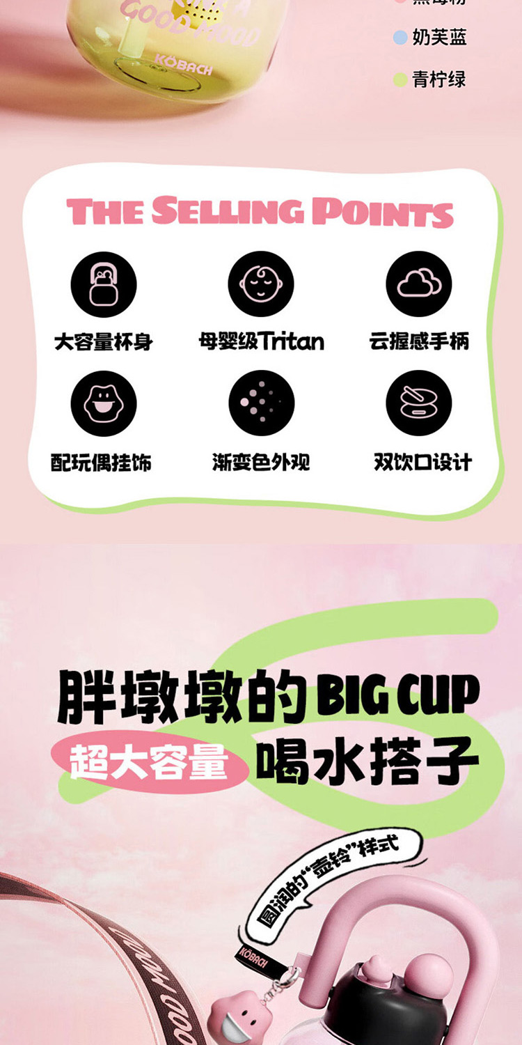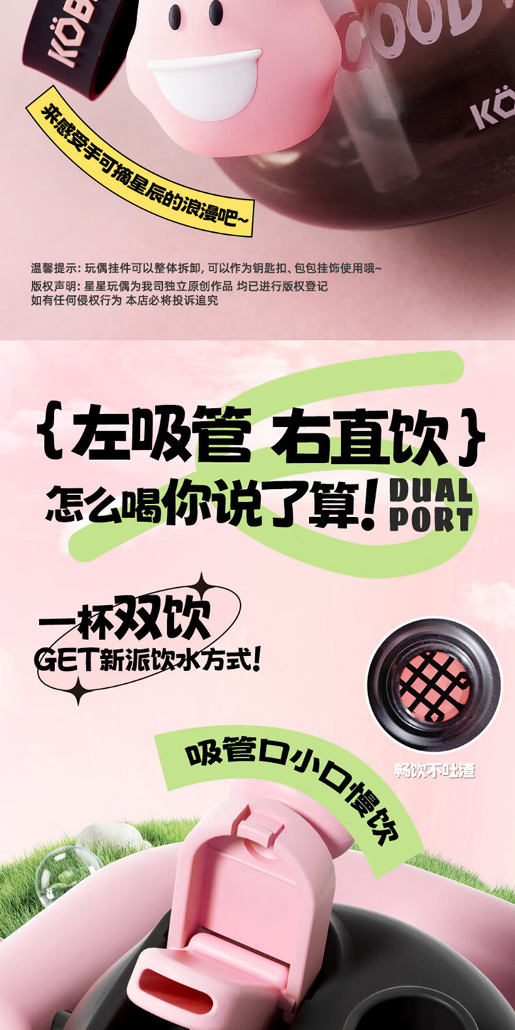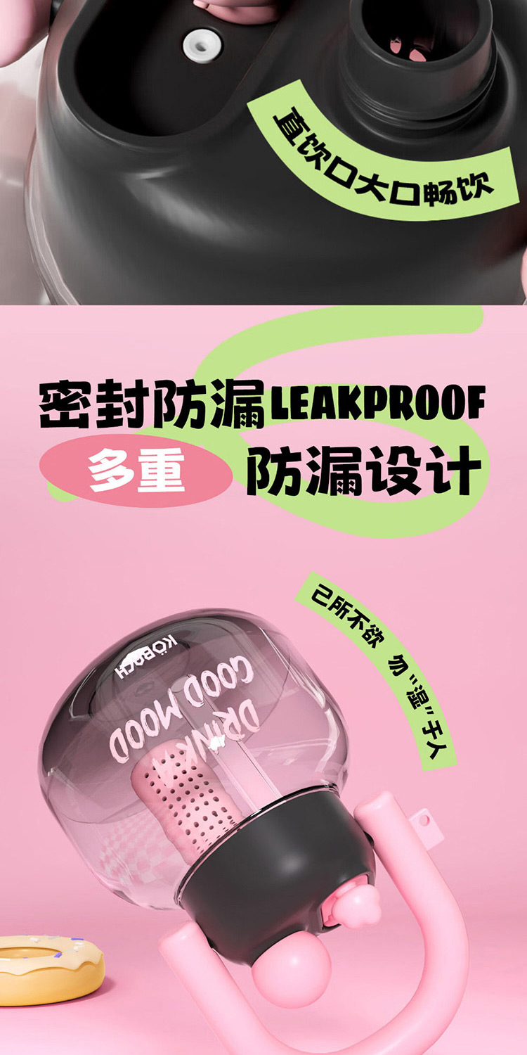 康巴赫春日系列双饮拎拎壶800mL黑莓粉(含背带绳)