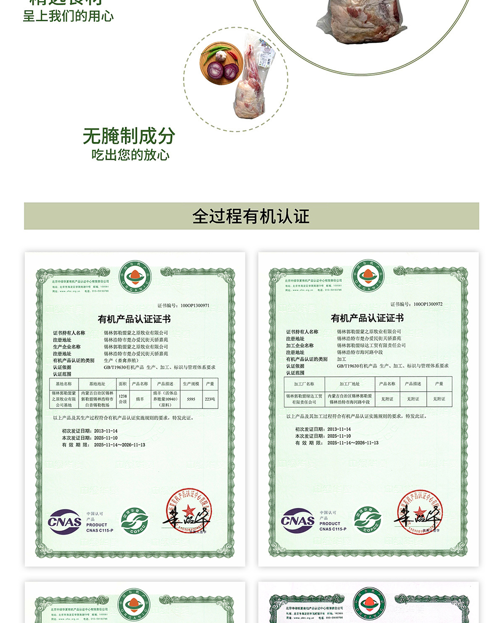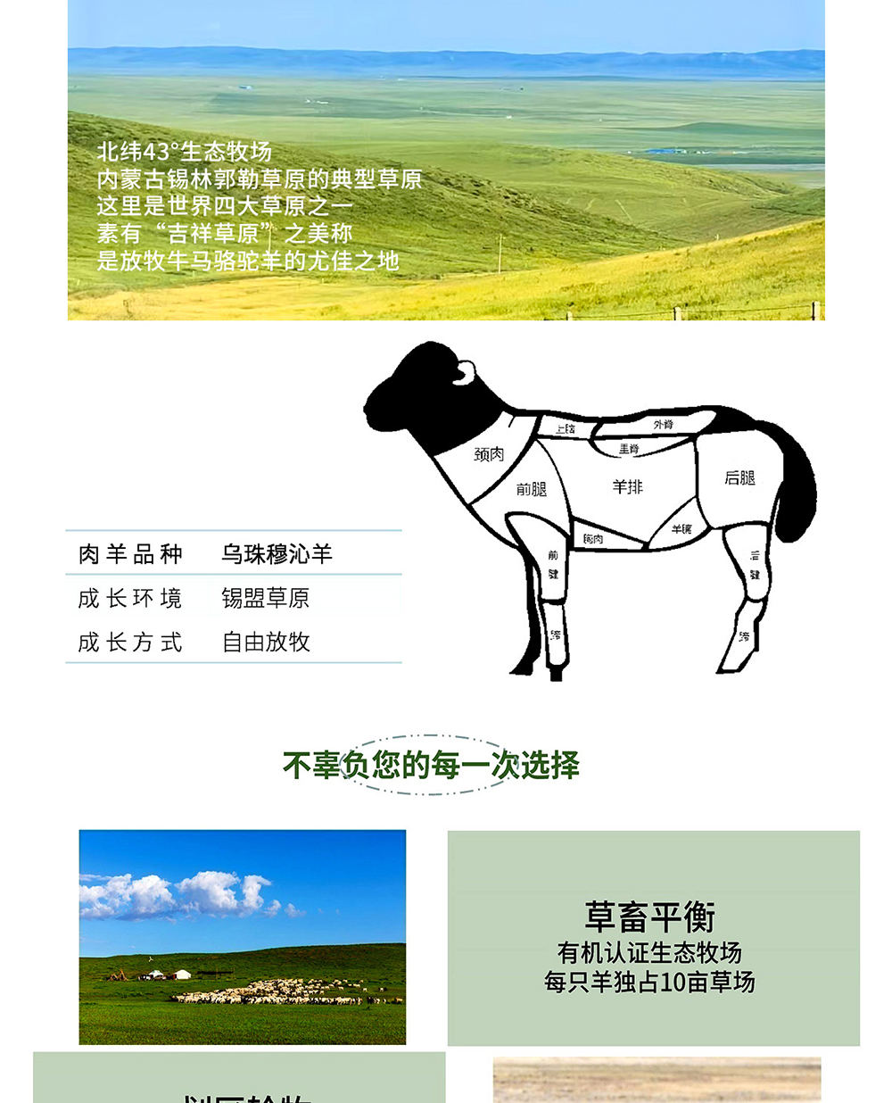 锡盟草原有机羔羊后腿1.5kg/袋 包邮 基地直发