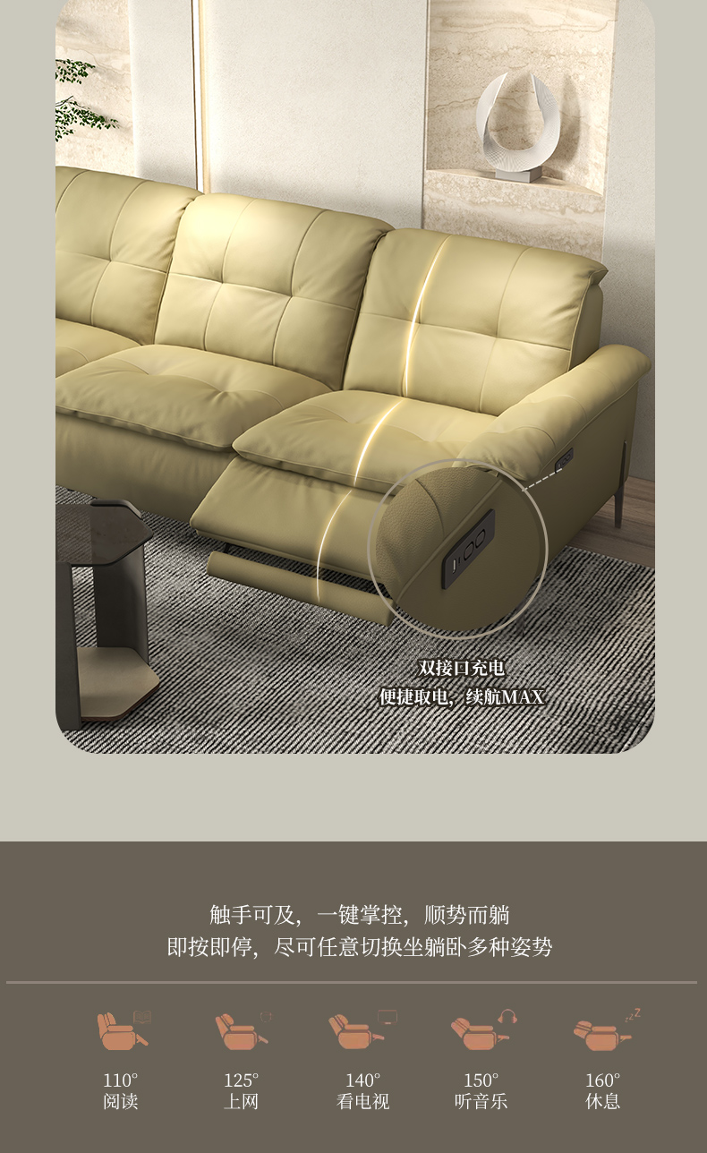 顾家家居整装 舒适 皮艺功能沙发 KZ.9015维纳G