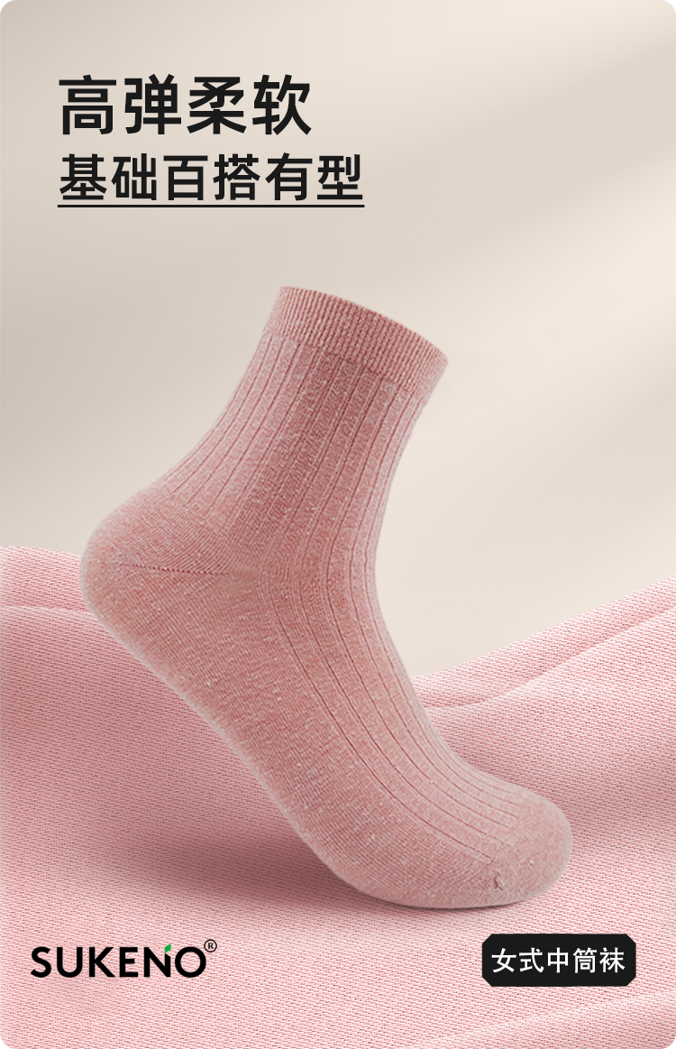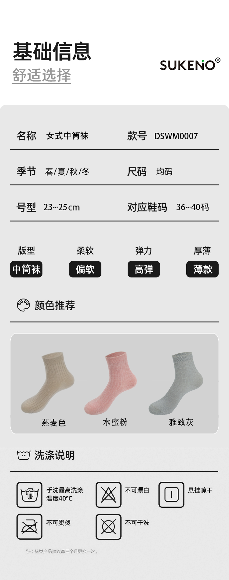 SUKENO春夏季中筒袜纯棉亚麻舒适透气无骨缝女袜
