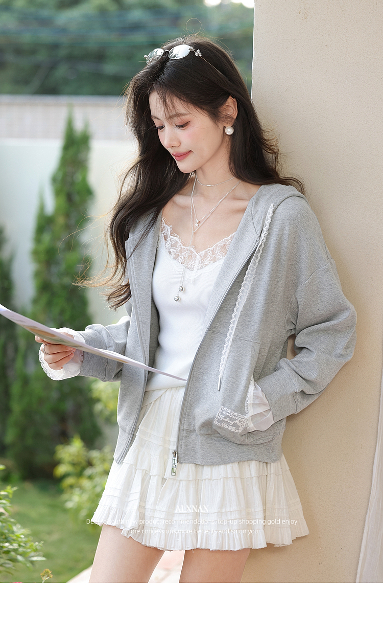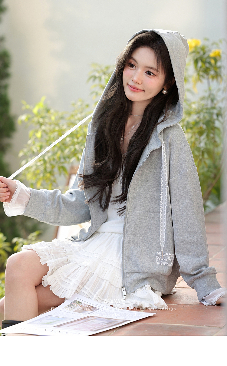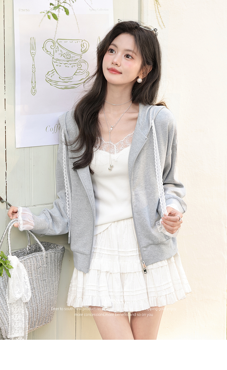 鹿向南「琢磨不透」灰色长袖卫衣女春季新款时尚修身外搭开衫上衣