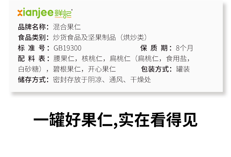 【鲜记】混合果仁 348g 博士帽罐装