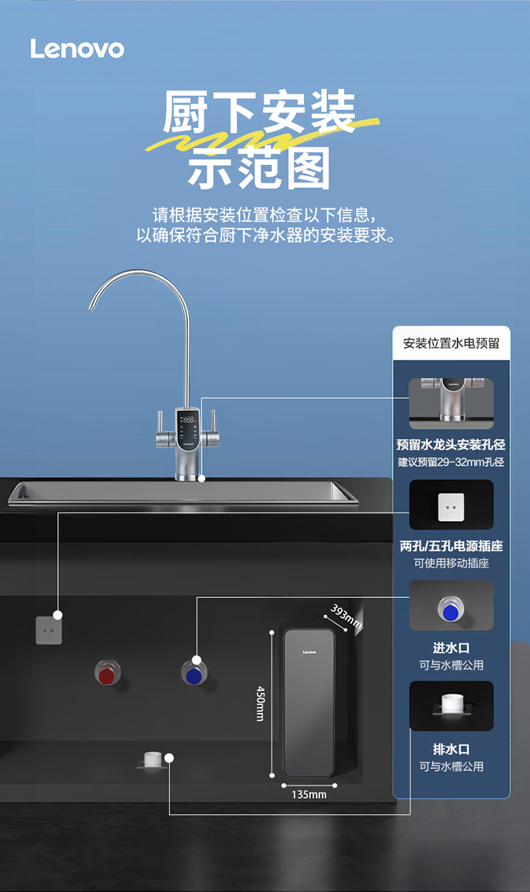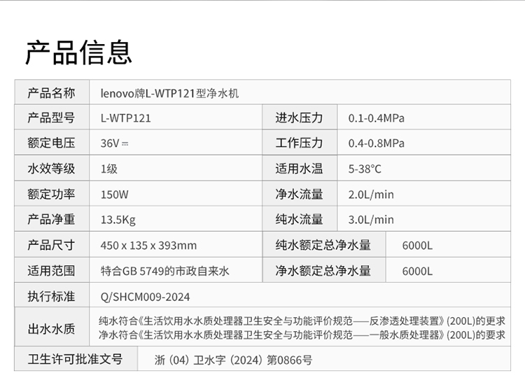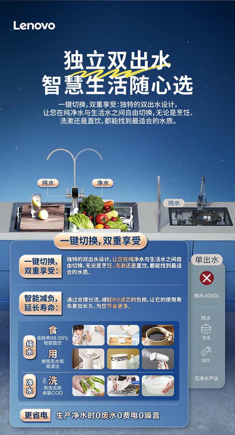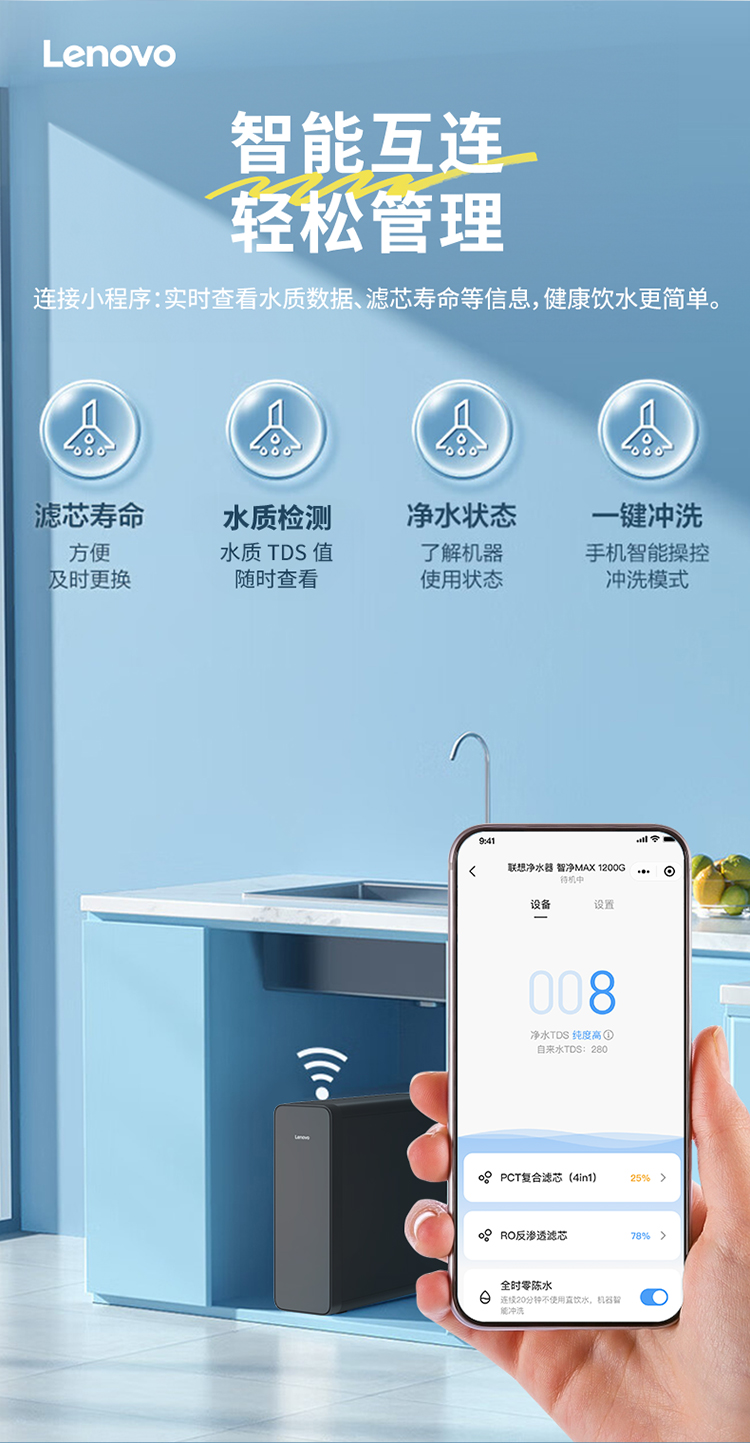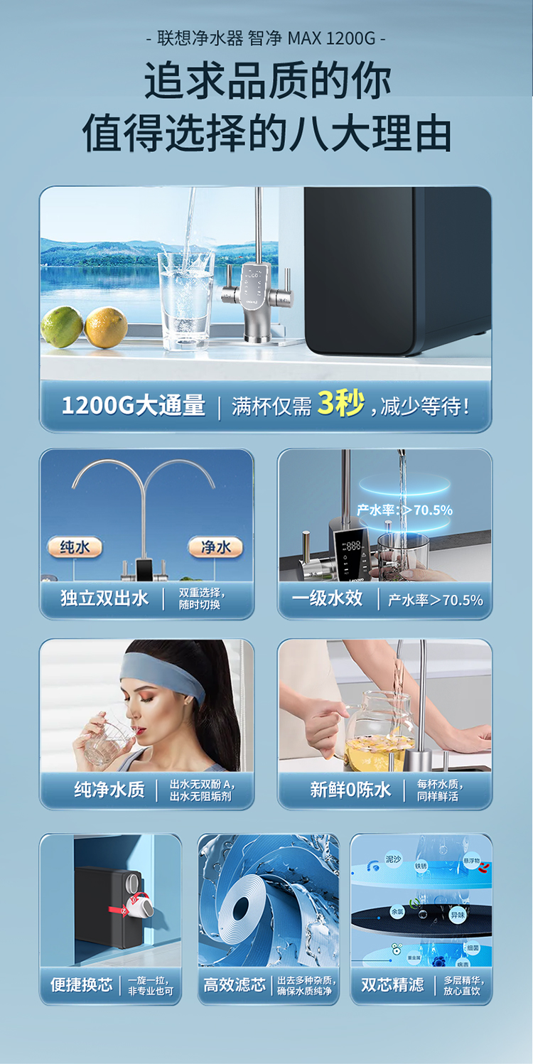 【独立双出水】联想 净水器智净MAX 1台 1200G大通量