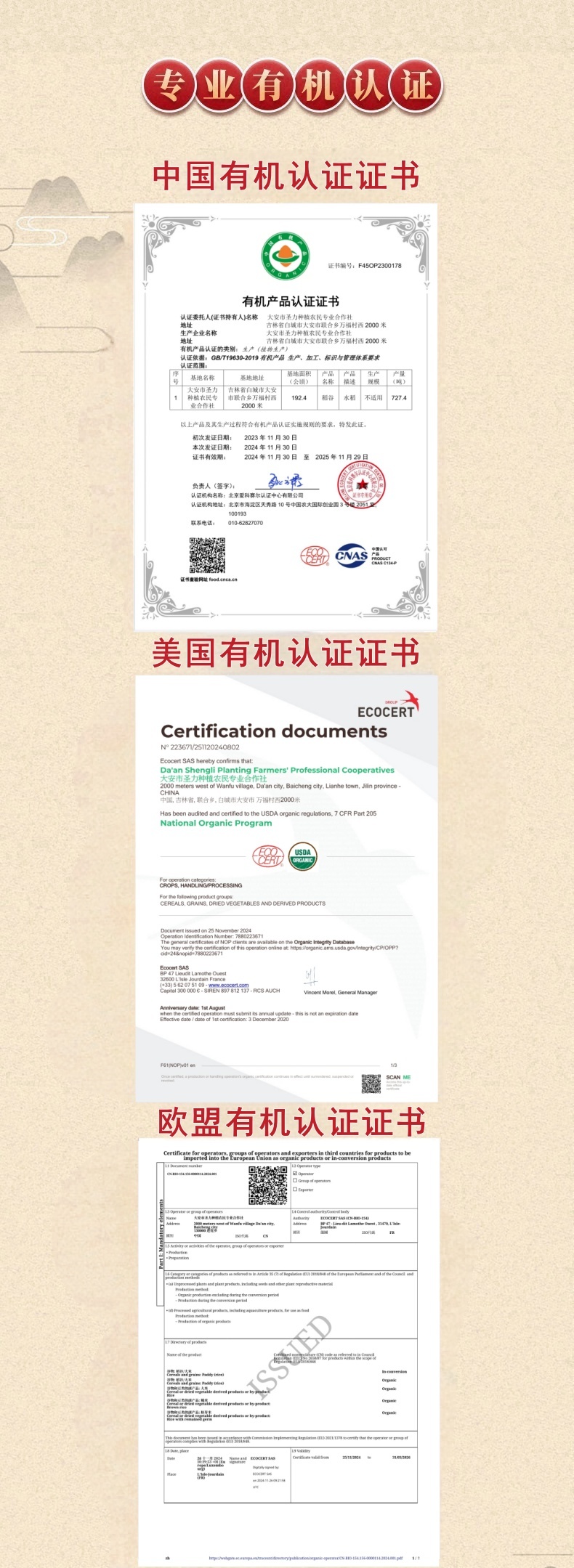 【稻泽乡】白城出好米 欧盟认证有机胚芽米/大米/糙米 婴儿老人健康好辅助食