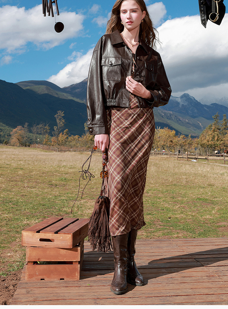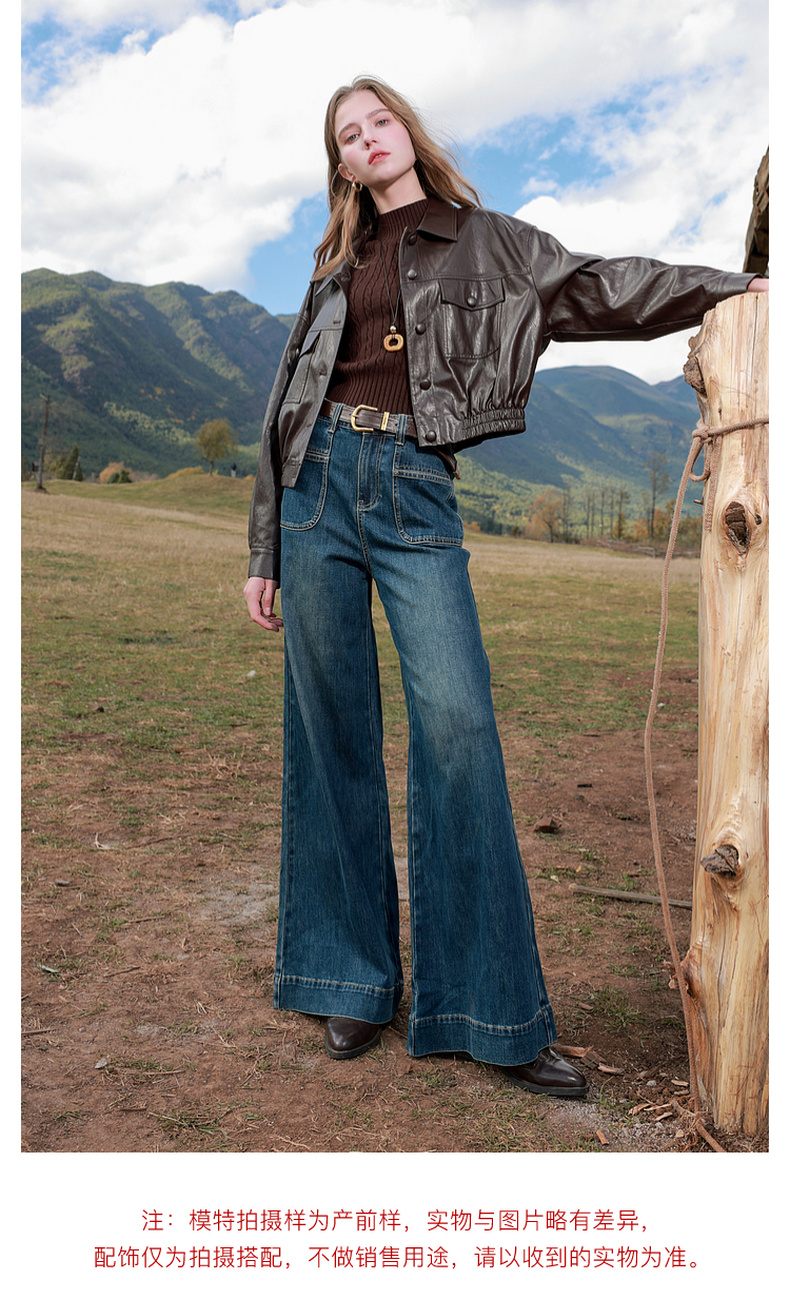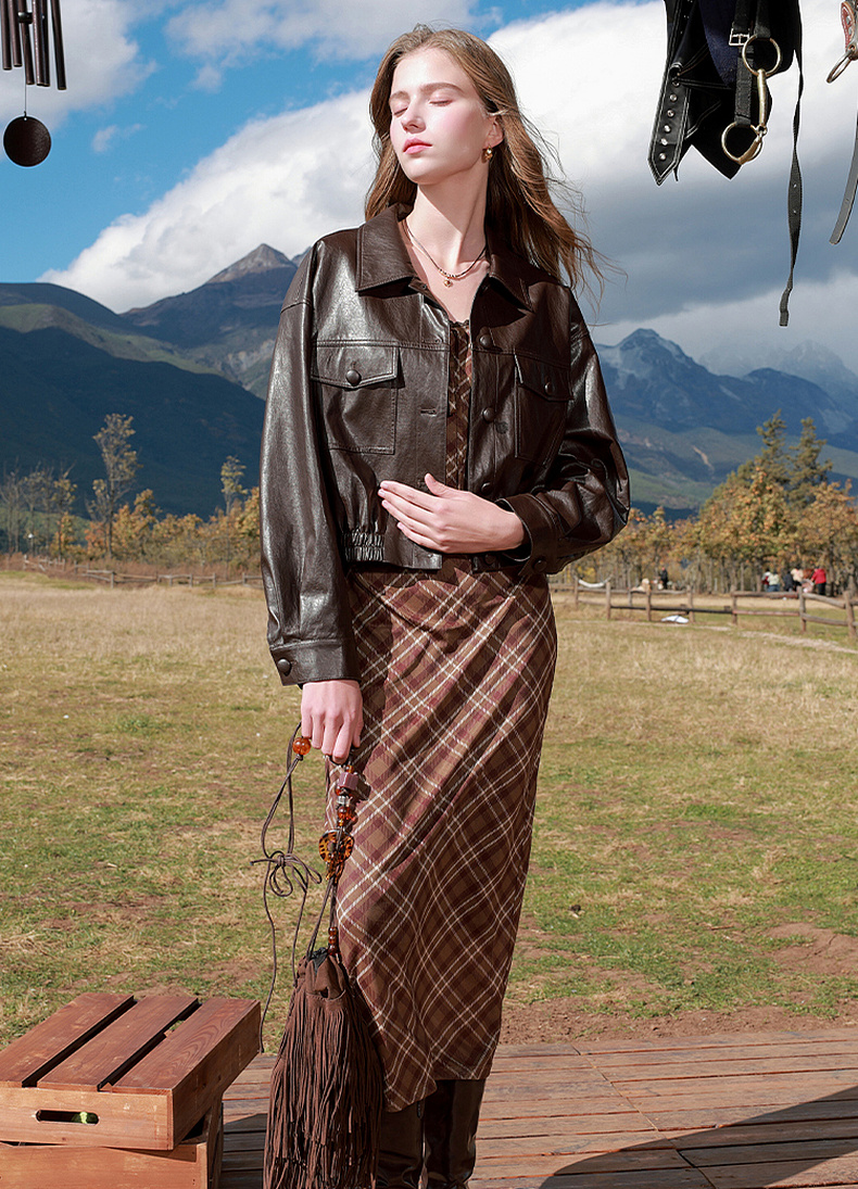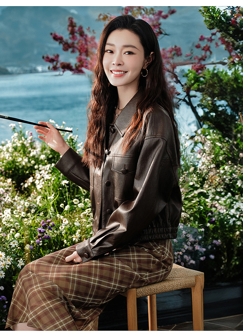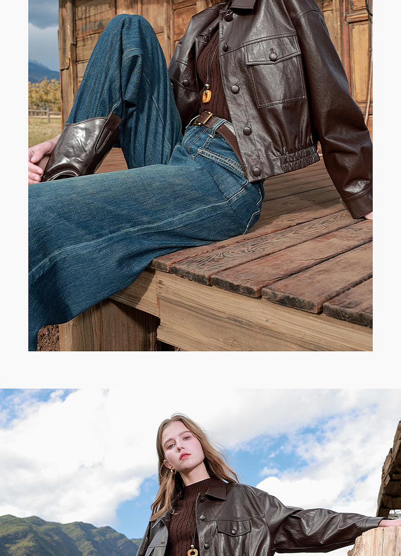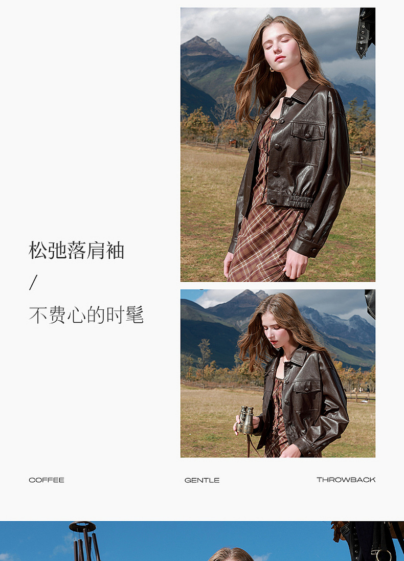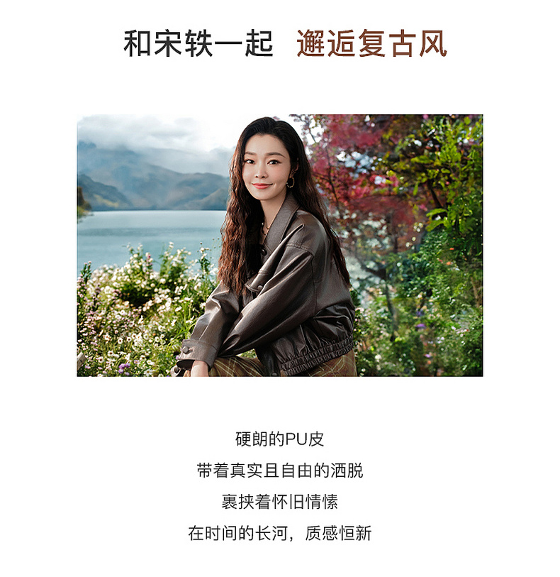 三彩2026春季新款PU皮衣外套翻领宽松落肩袖上衣开衫皮夹克M