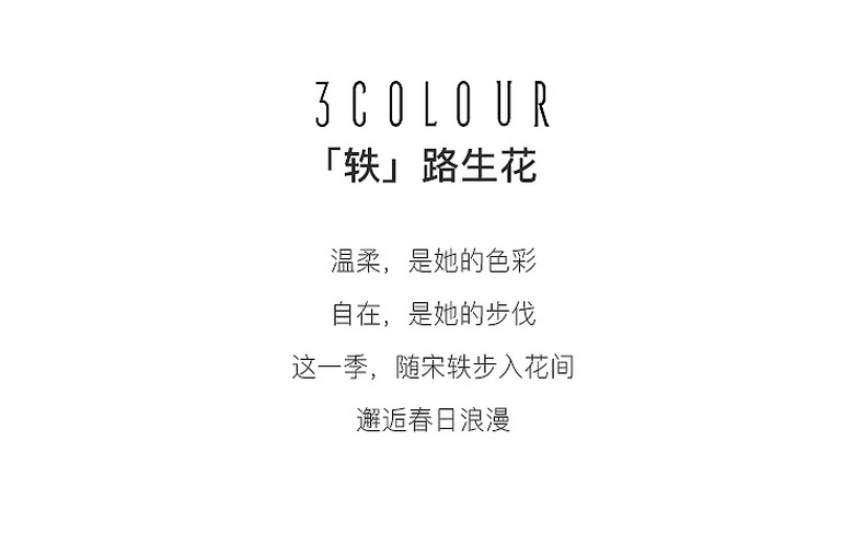 - 3COLOUR,一直致力于探索自我与时尚审美,用穿衣哲学折射生活主张,在流动中探寻恒久。