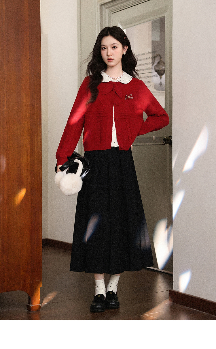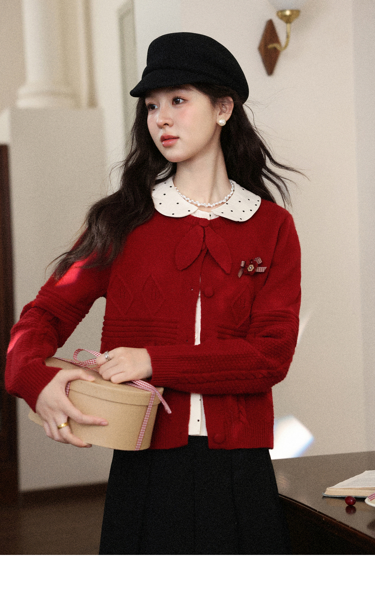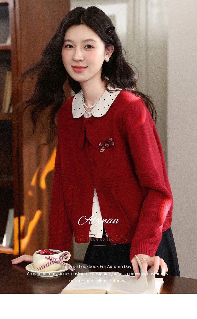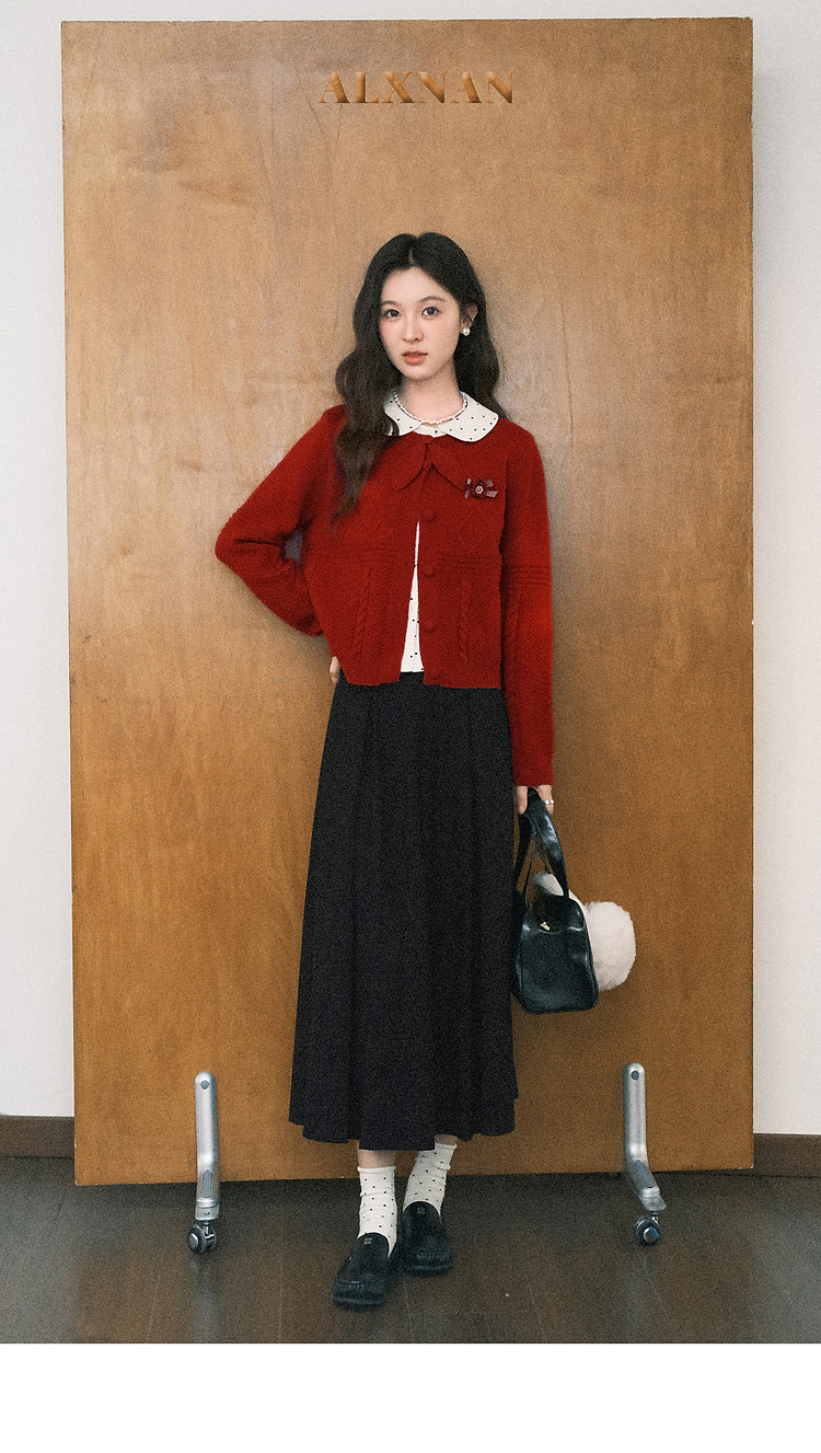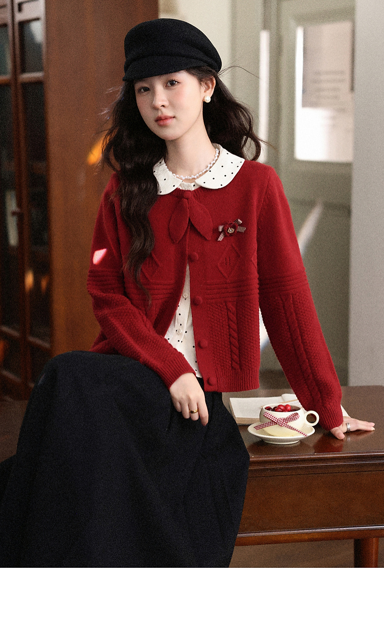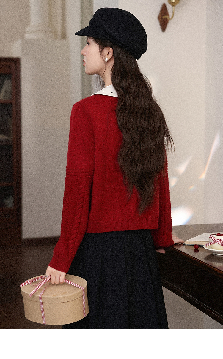 鹿向南「微醺玫瑰」新年红色假两件针织衫上衣秋冬季慵懒风毛衣女