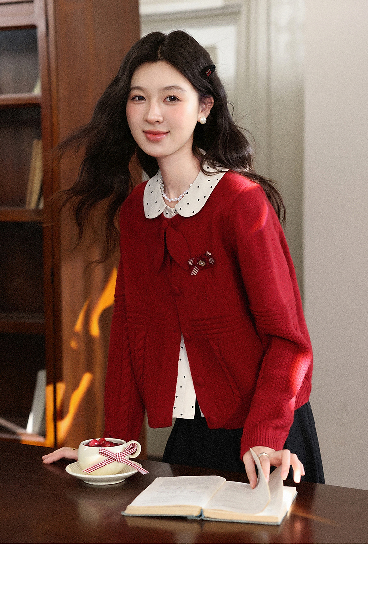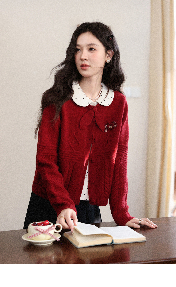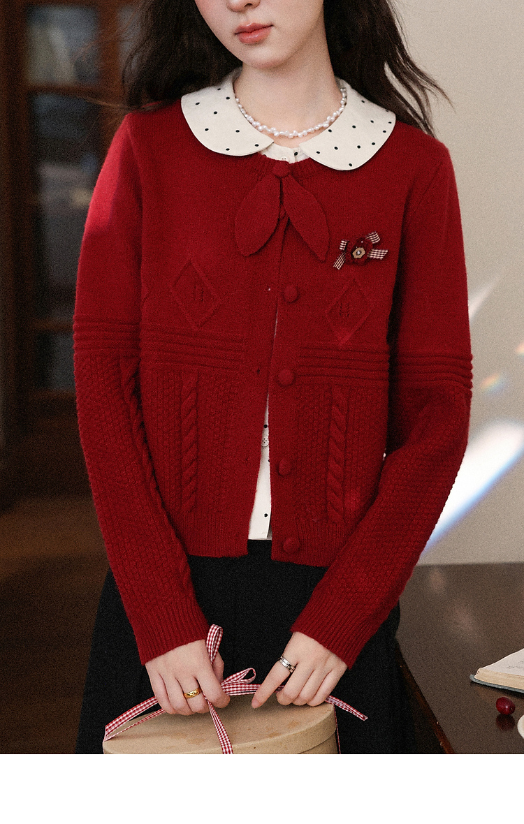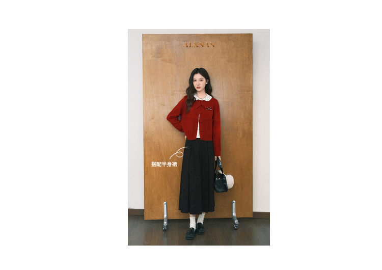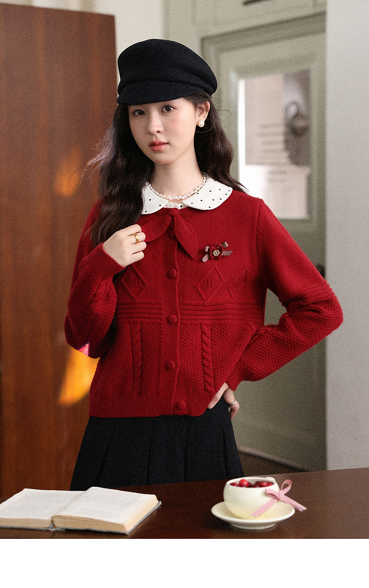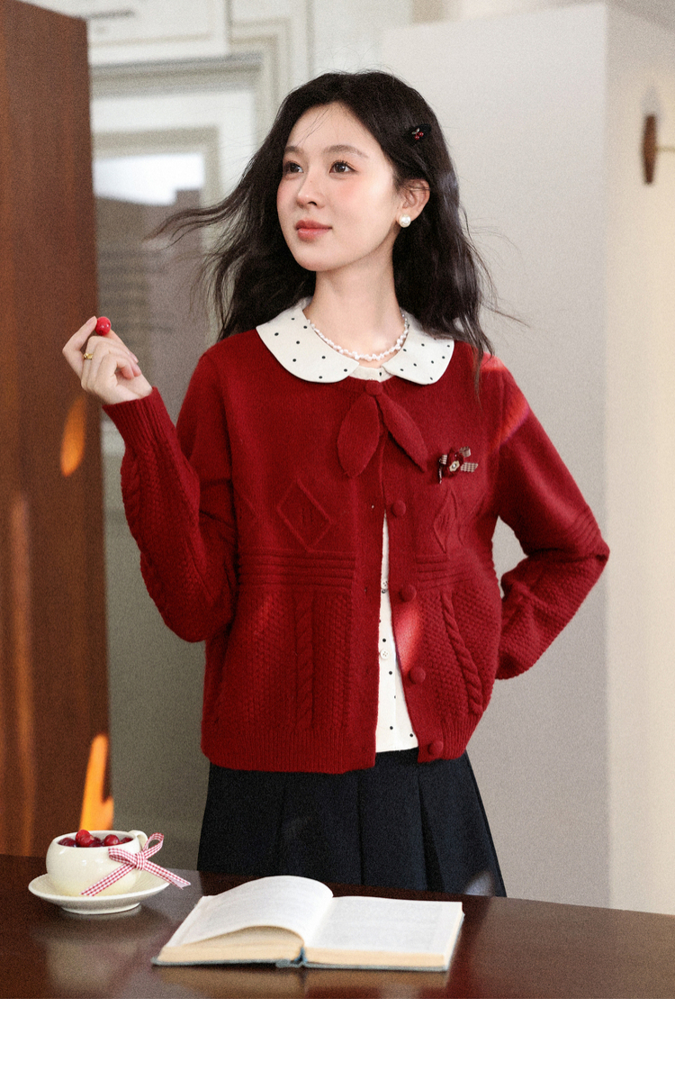 鹿向南「微醺玫瑰」新年红色假两件针织衫上衣秋冬季慵懒风毛衣女