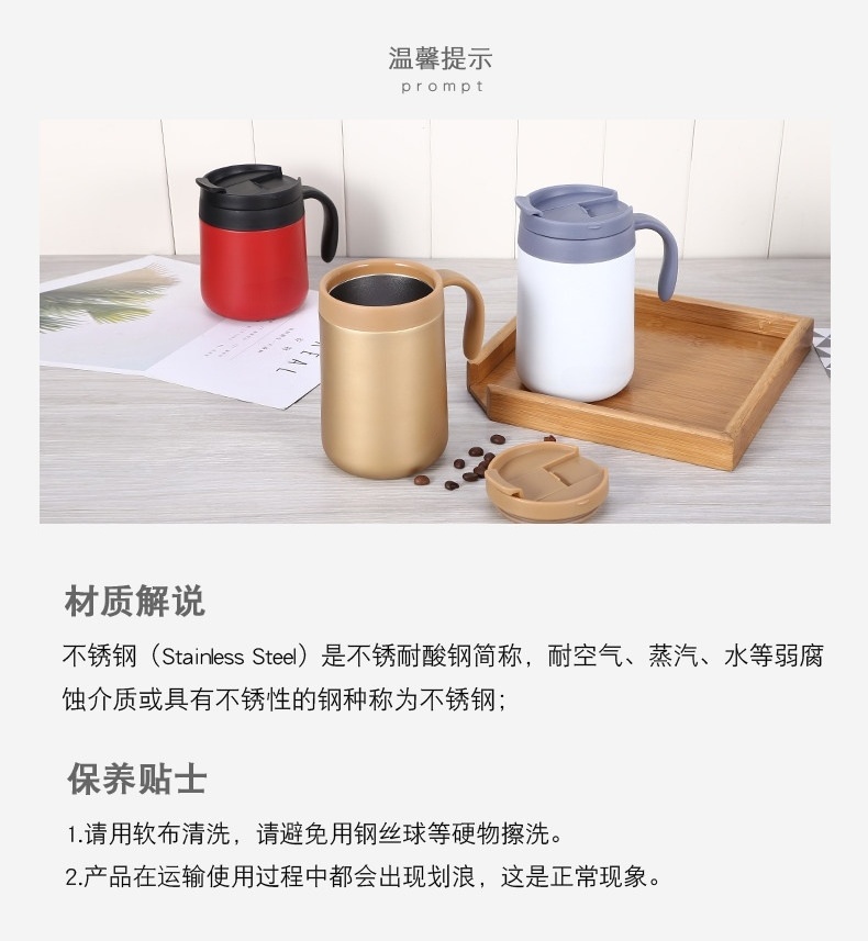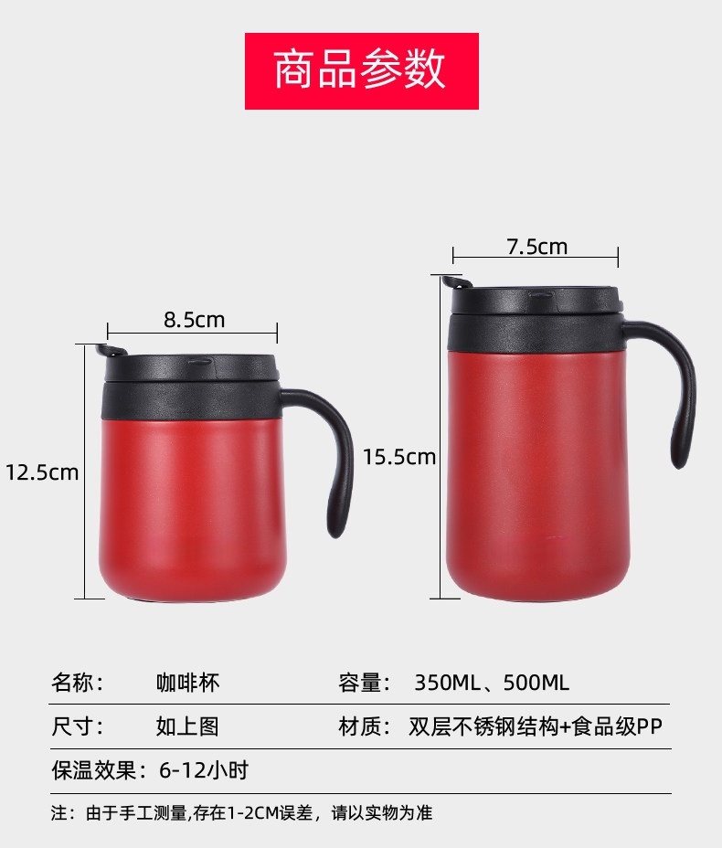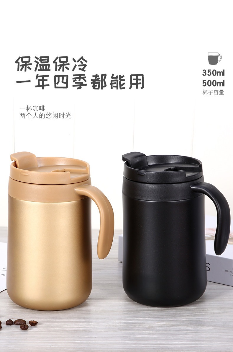 手柄咖啡杯高档真空食品级保温杯男大容量办公室泡茶杯304不锈钢