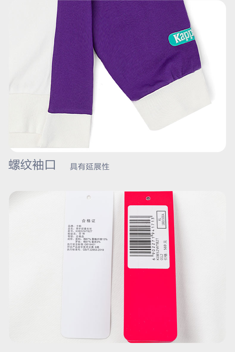 Kappa卡帕套头衫春秋新款男运动卫衣休闲圆领长袖外套K0B52WT82T
