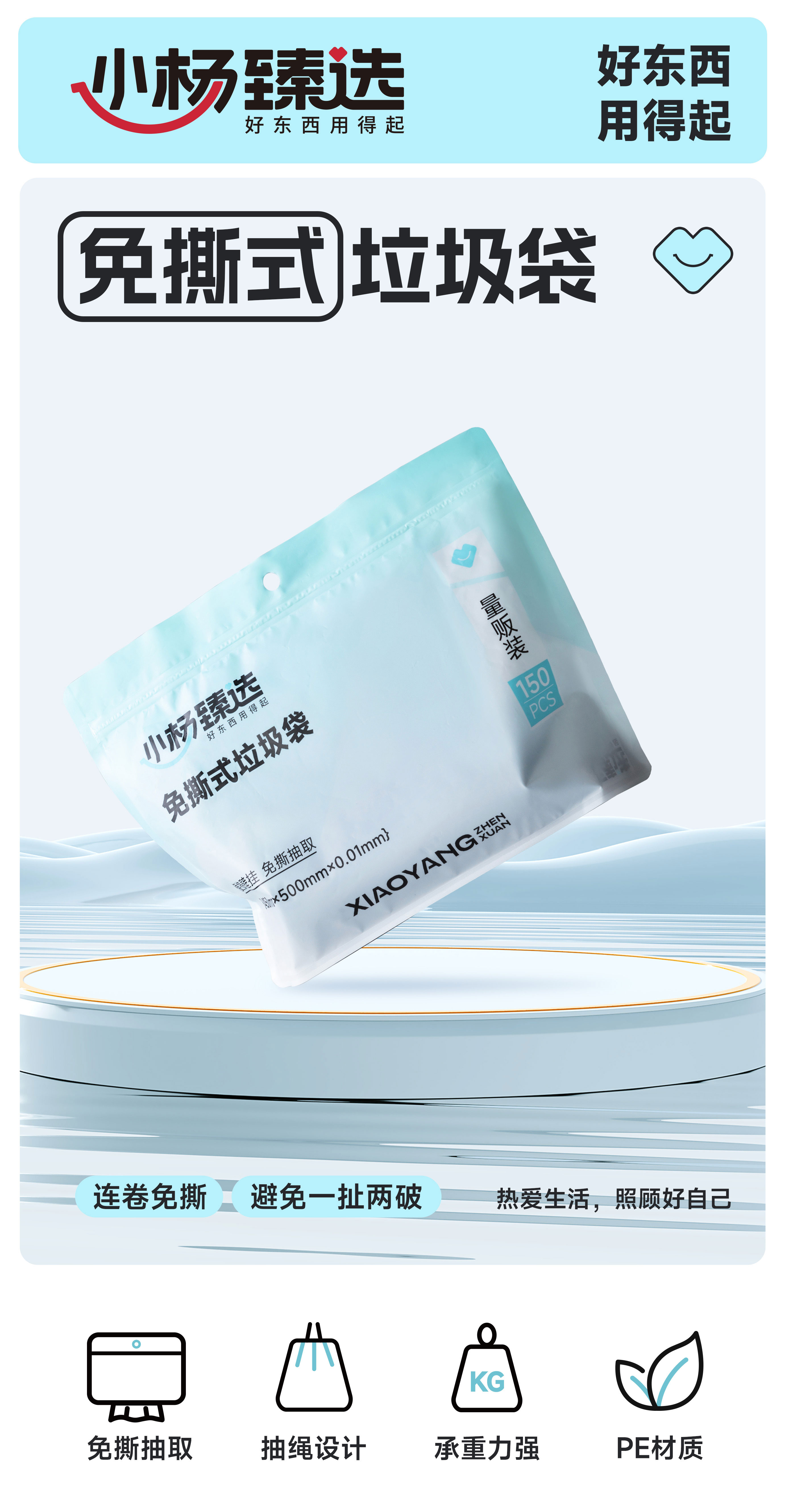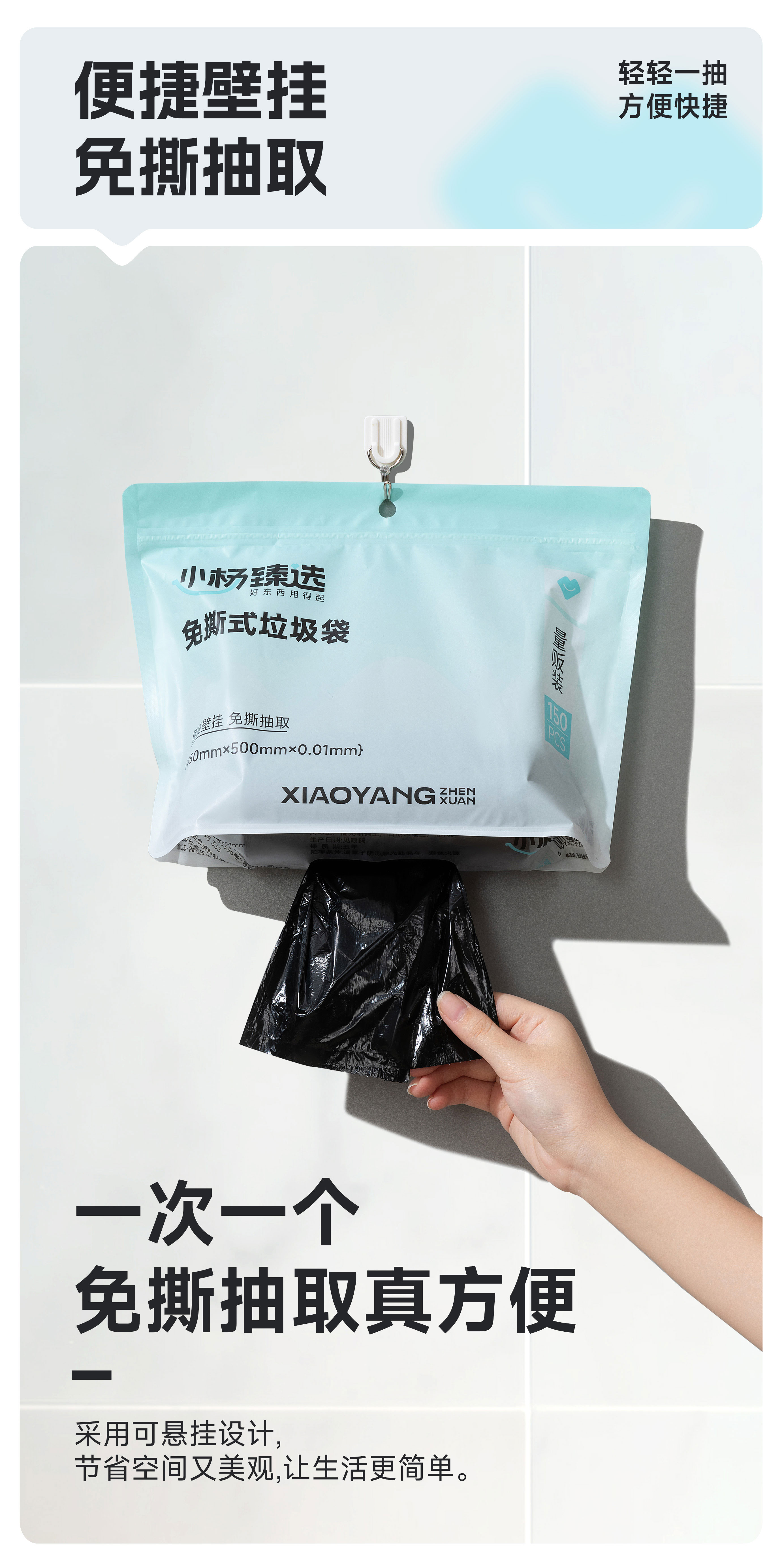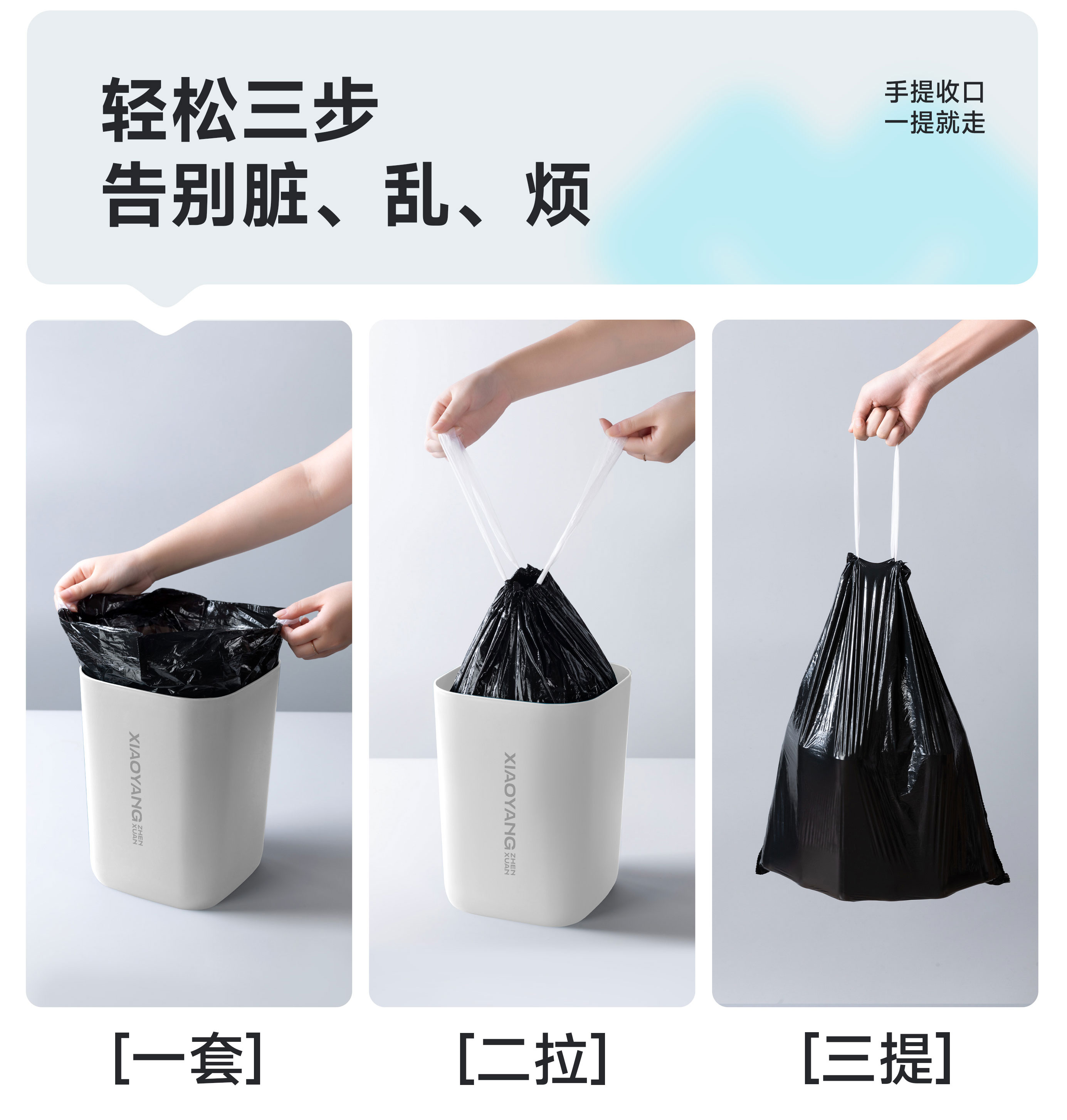 【小杨臻选】免撕垃圾袋 手提式家用一次性垃圾袋 抽绳式可悬挂抽取