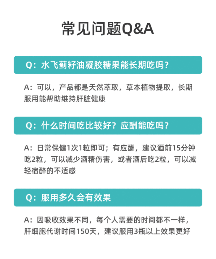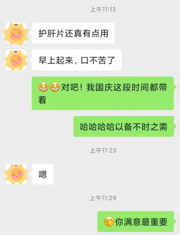 食用方法:温水吞服,日常1次1-3粒有应酬,建议酒前15分钟吃2粒,可以减少酒精伤害,或者酒后吃2粒,可以减轻宿醉的不适感。)